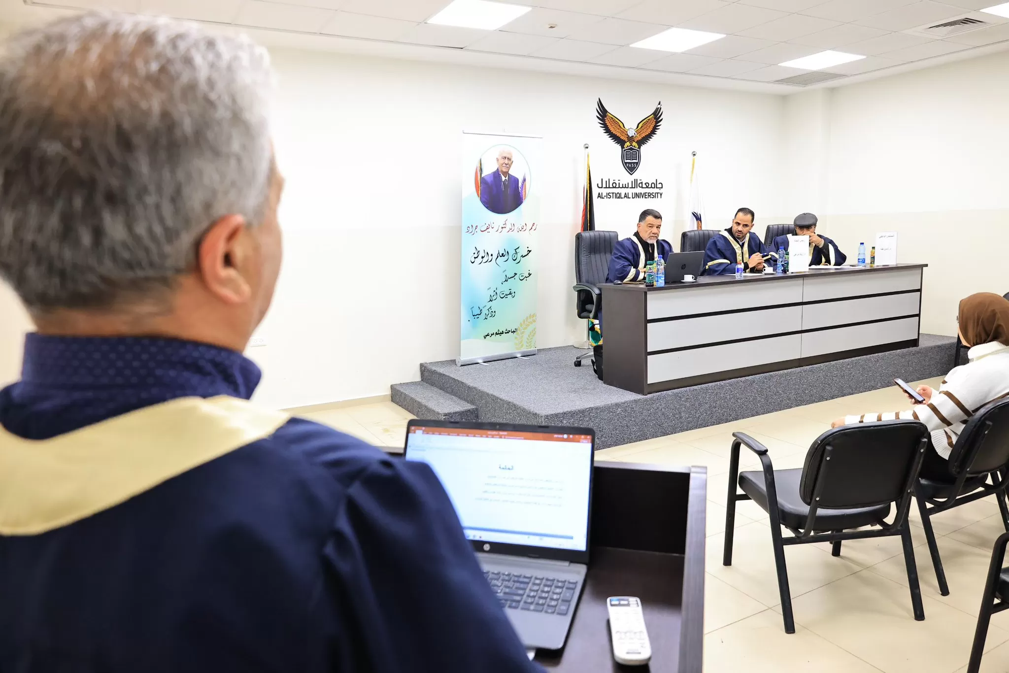 ناقشت كلية الدراسات العليا والبحث العلمي- قسم الإدارة العامة في جامعة الاستقلال رسالة ماجستير تقدّم بها الطالب عبد الكريم عبد الحميد عرمان الموسومة ب "دور ديوان الموظفين العام في تعزيز شفافية التوظيف في الوزارات الفلسطينية".
