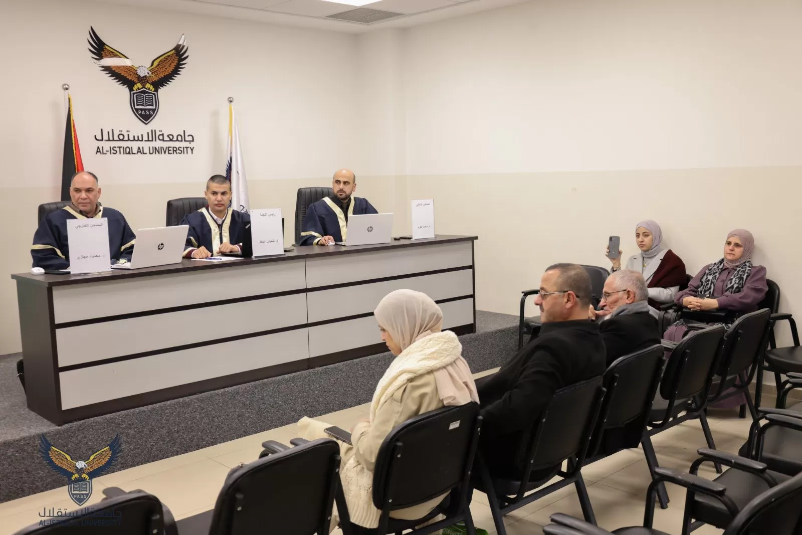 ناقشت كلية الدراسات العليا والبحث العلمي- قسم الإدارة العامة في جامعة الاستقلال رسالة ماجستير تقدّم بها الطالب أحمد عبد الحليم حمارشة الموسومة ب "أثر تطبيق إدارة المخاطر على كفاءة الأداء في وزارة الصحة الفلسطينية".
