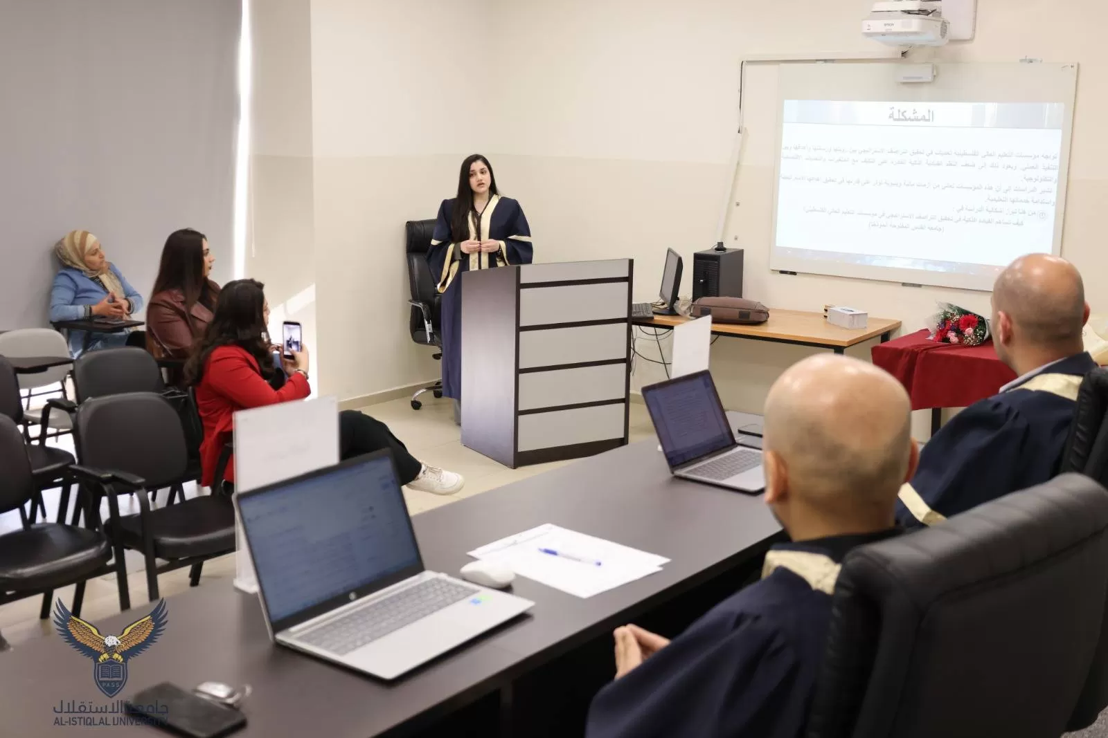 ناقشت كلية الدراسات العليا والبحث العلمي في جامعة الاستقلال اليوم الإثنين رسالة ماجستير للطالبة جوليانا مجروح والموسومة دور القيادة الذكية في تحقيق التراصف الاستراتيجي في مؤسسات التعليم العالي الفلسطيني