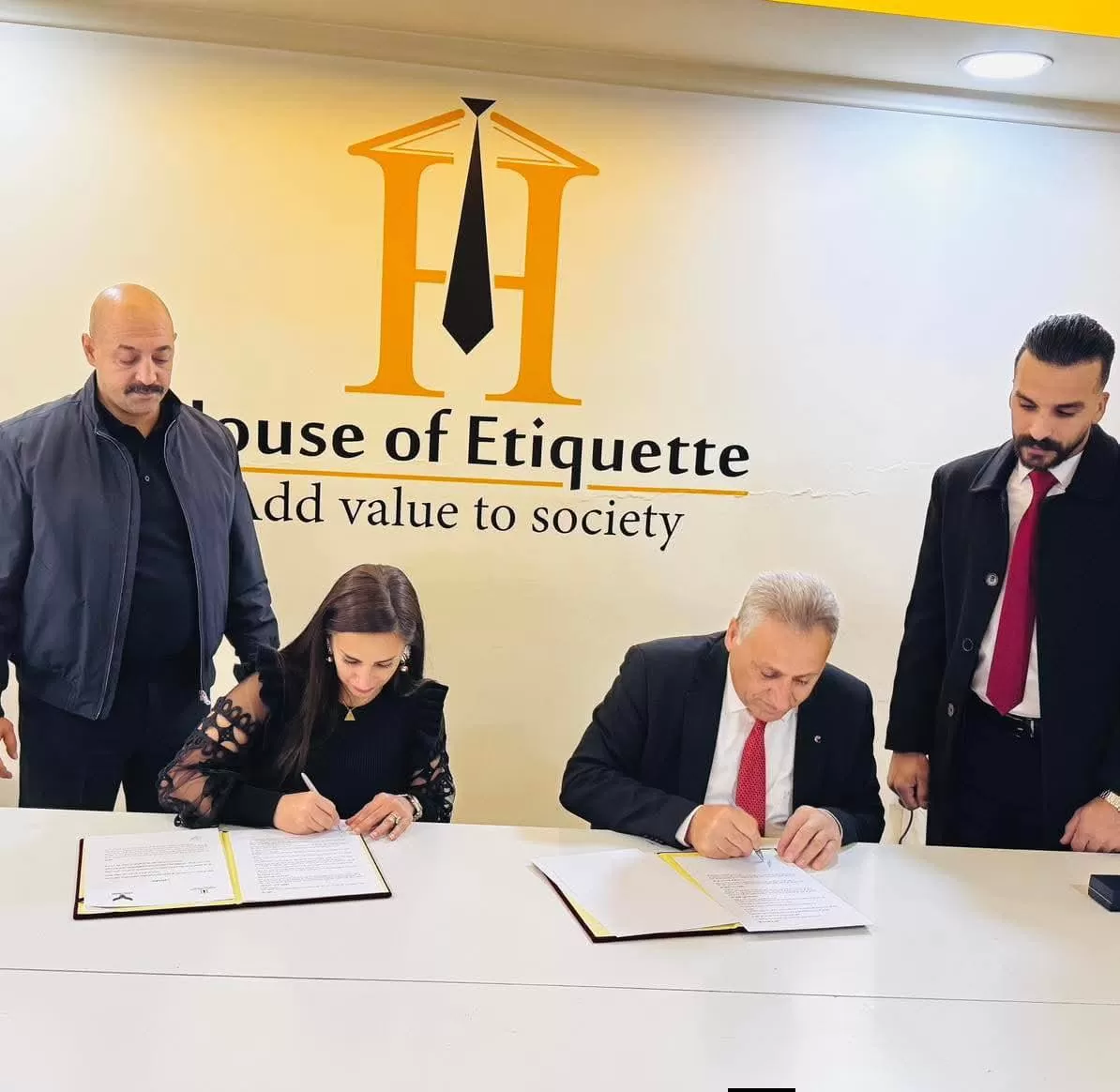 ومثل جامعة الاستقلال في توقيع الاتفاقية رئيسها الأستاذ الدكتور نور الدين أبو الرب، فيما مثل أكاديمية بيت الإتيكيت رئيستها المستشارة رامه العساف، بحضور سعادة السفير د.علي كريشان.