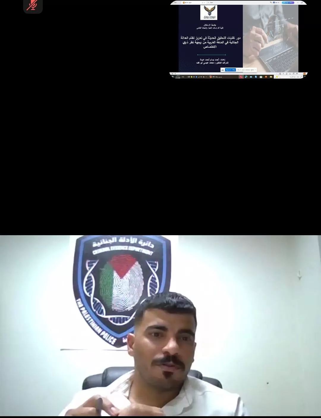 مناقشة رسالة ماجستير حول دور تقنيات التحقيق الحديثة في تعزيز نظام العدالة الجنائية في الضفة الغربية من وجهة نظر ذوي الاختصاص