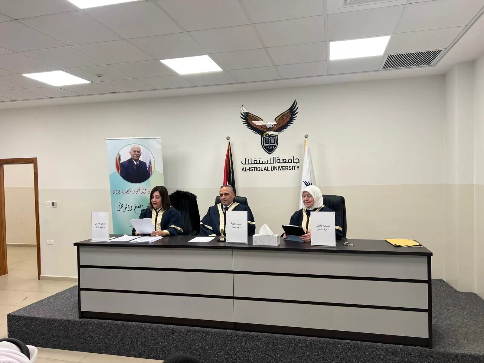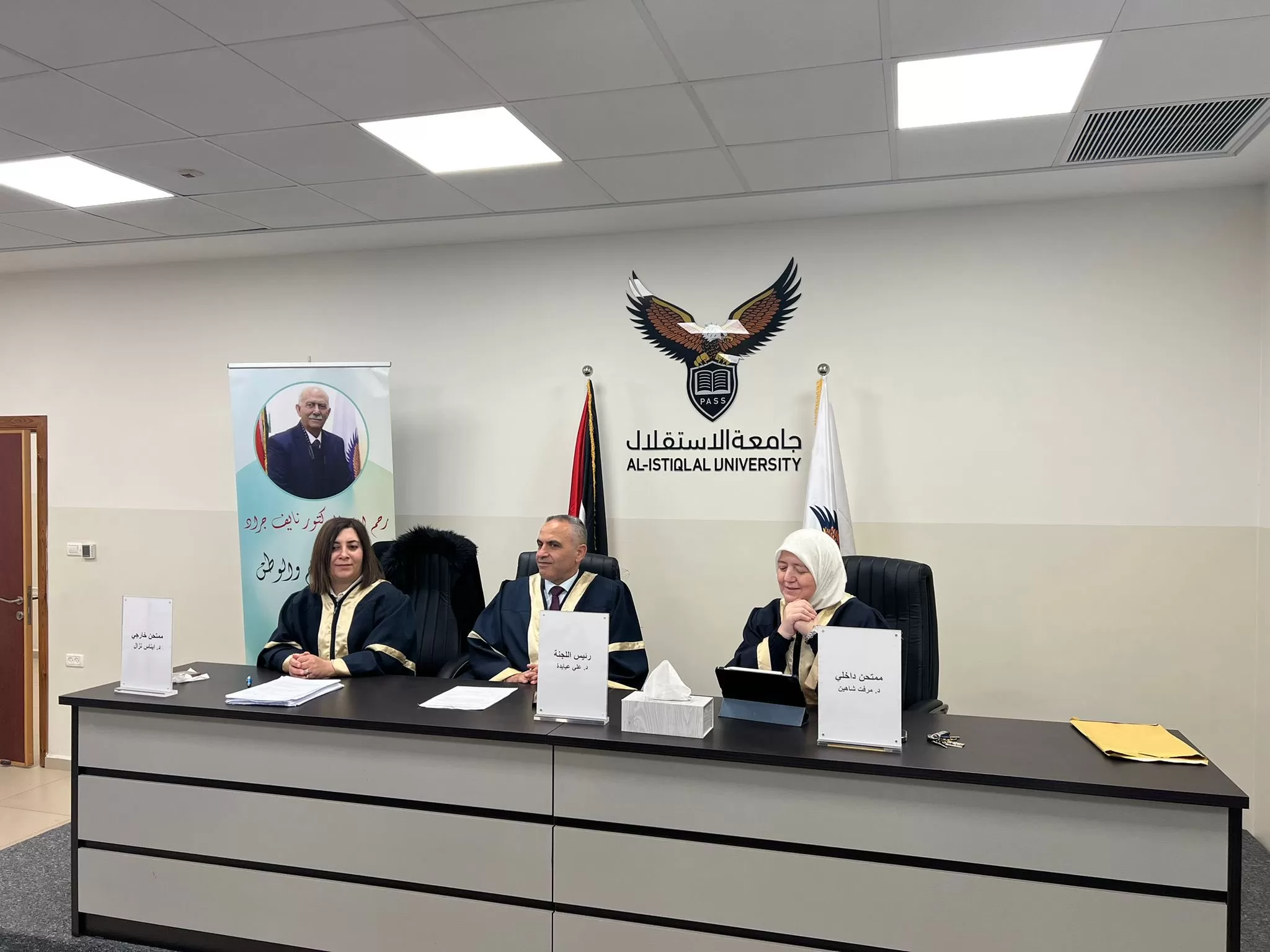 وتكونت لجنة المناقشة من د. علي عيايدة مشرفًا على الرسالة، د. إيناس نزال ممتحنًا خارجيًا، د. ميرفت شاهين ممتحنًا داخليًا.