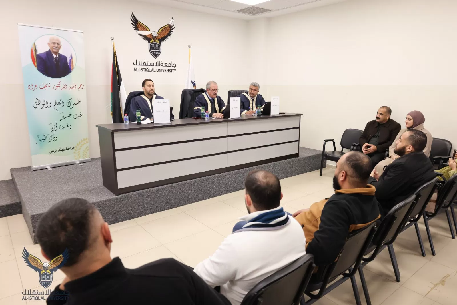 وتكونت لجنة المناقشة من د.محمد دبوس مشرفًا على الرسالة، د. إبراهيم المصري ممتحنًا خارجيًا، د. صلاح شوامرة ممتحنًا داخليًا.
