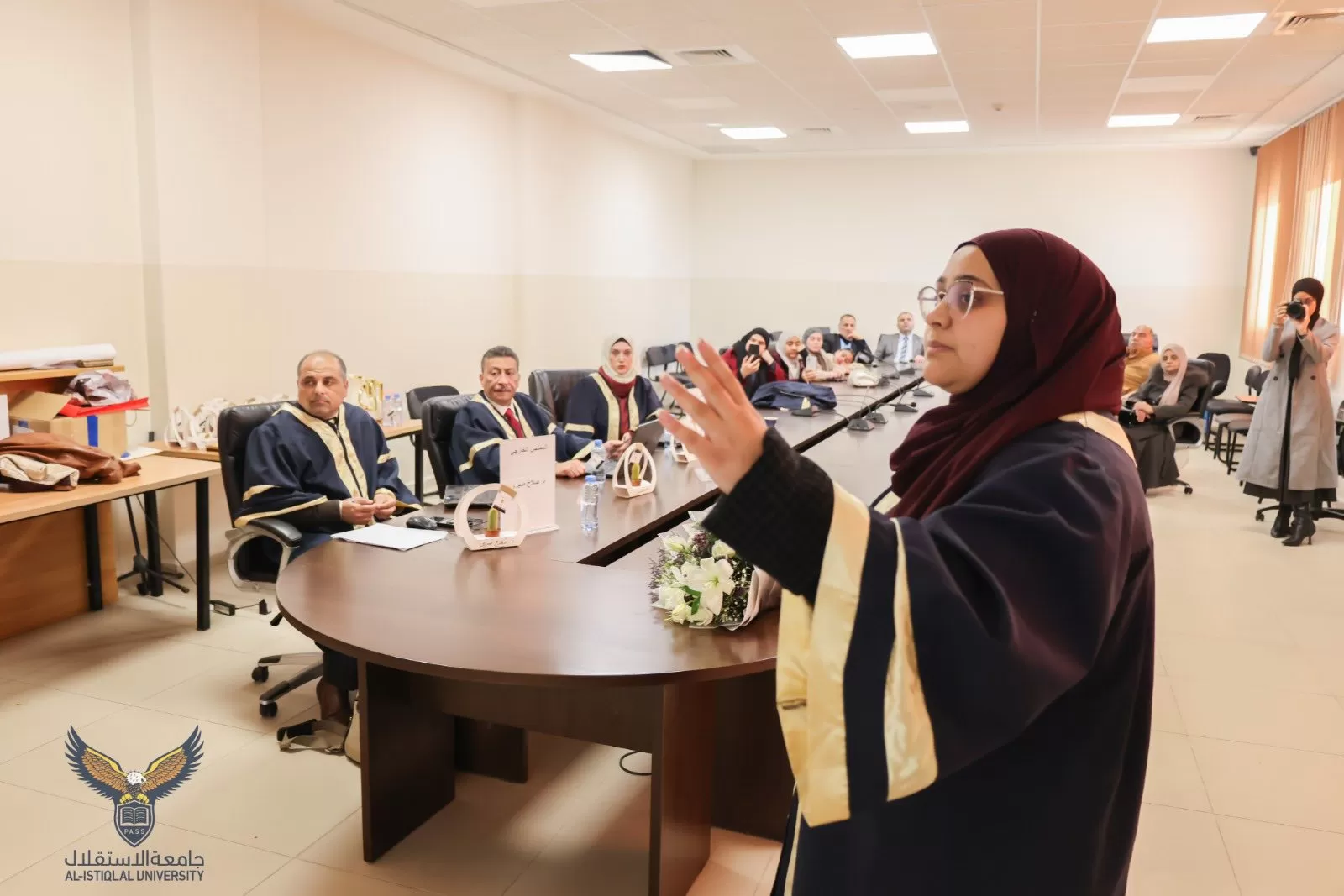 وتكونت لجنة المناقشة من د.هيثم التميمي مشرفًا على الرسالة، د. صلاح صبري ممتحنًا خارجيًا، د. عفاف حساسنة ممتحنًا داخليًا.