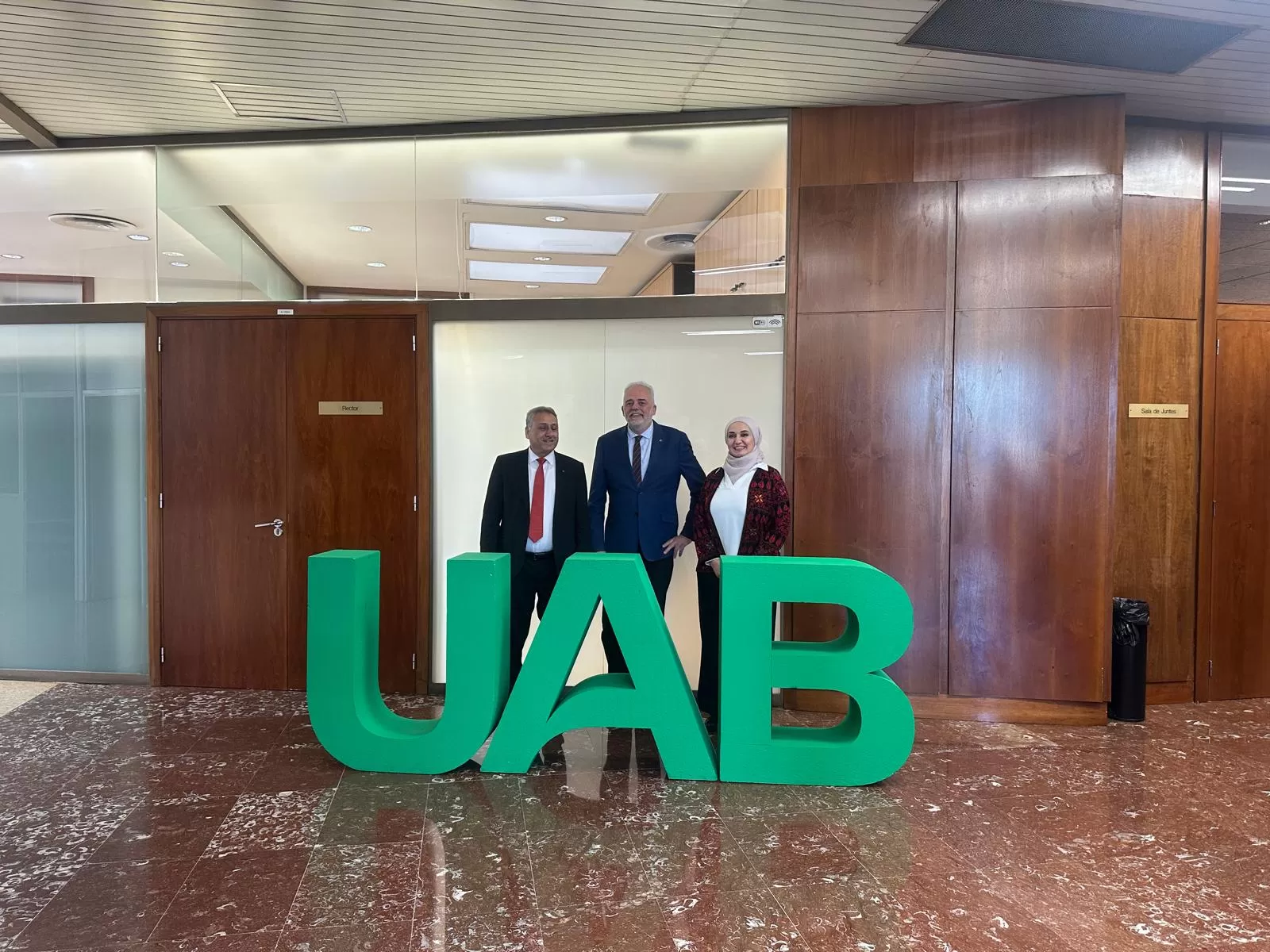 وعقد الأستاذ الدكتور أبو الرب إجتماعاً رسمياً في مقر رئاسة جامعة برشلونة المستقلة مع رئيس الجامعة خافيير لافوينتي، بحضور الأمين العام للجامعة استر زاباتر، ونائب رئيس الجامعة للعلاقات الدولية أوسكار جانيه، حيث جرى بحث سبل تعزيز التعاون المؤسسي، وتطوير الشراكات في مجالات البحث العلمي، والتبادل الأكاديمي، وبرامج الماجستير المشتركة.