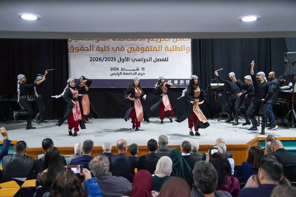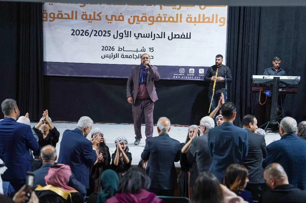 شاركت فرقة جامعة الاستقلال في حفل تكريم كلية الحقوق في جامعة القدس، والذي أقيم بحضور رسمي وأكاديمي واسع، احتفاء بالطلبة المتفوقين وتكريماً للأساتذة المؤسسين المتقاعدين تقديراً لمسيرتهم الرائدة في بناء أول كلية حقوق في الوطن وترسيخ تعليم قانوني رصين أسهم في خدمة المجتمع وتعزيز قطاع العدالة في فلسطين.