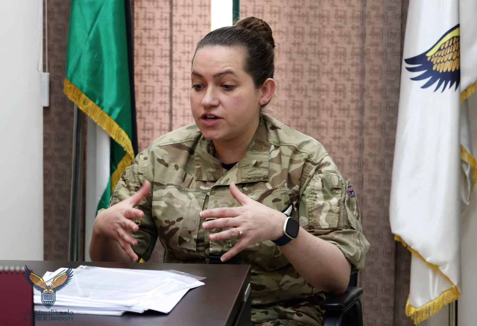 وشكر العميد الصباح الرائد شارلوت مثمناً دورها في المساهمة في إعداد الدورات التدريبية مؤكداً على أهمية دور و شراكة فريق الدعم البريطاني و إشرافه على الدورات ضمن البرامج العسكرية المشتركة مع جامعة الاستقلال والتي لها التأثير الملموس في تقوية مهارات الضباط.