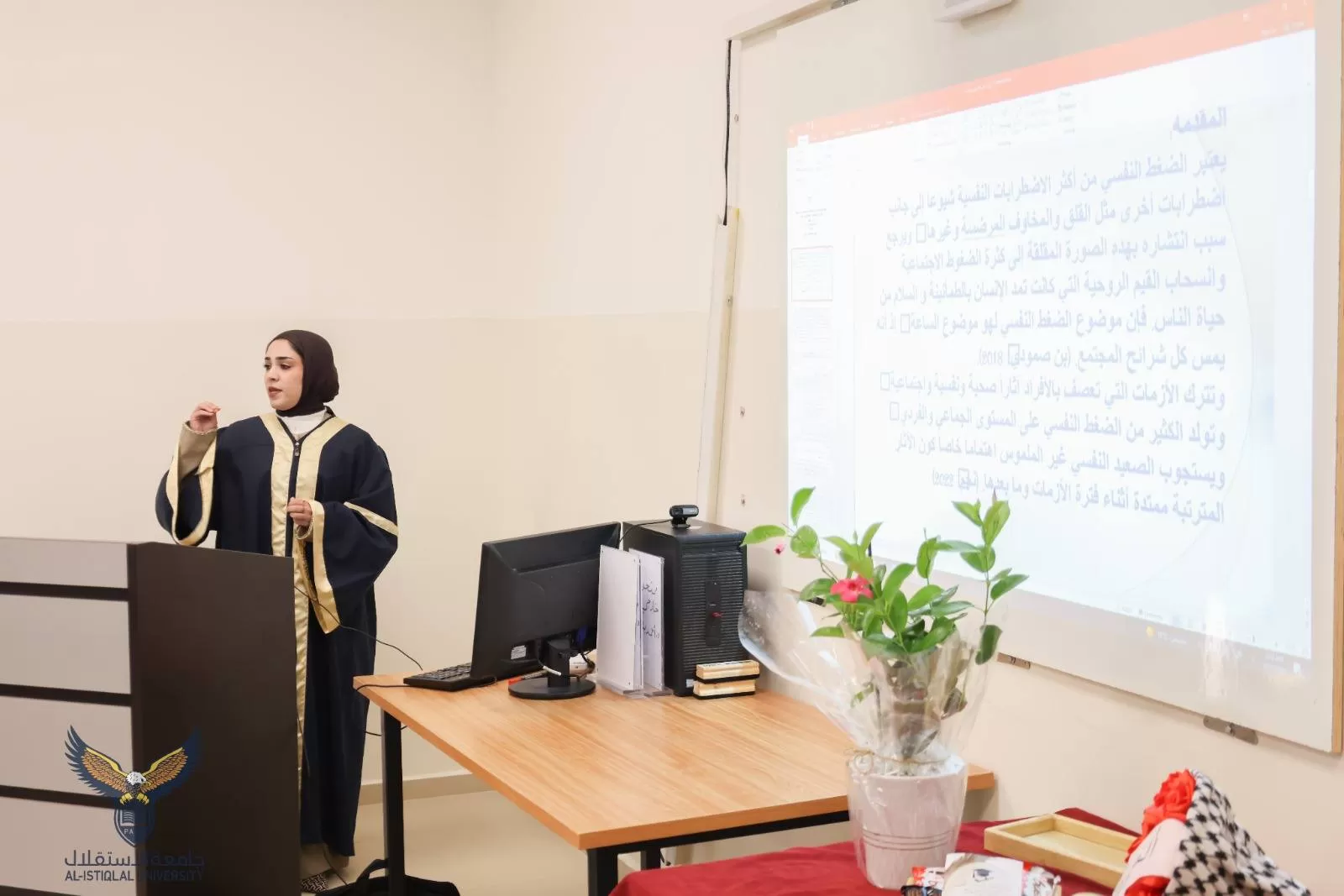 مناقشة رسالة ماجستير حول الضغط النفسي المدرك واستراتيجيات مواجهته لدى زوجات الشهداء في فلسطين محافظة جنين نموذجاً