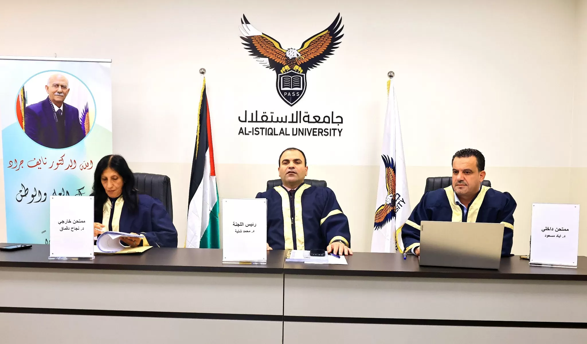 وتكونت لجنة المناقشة من د.محمد شتية ( مشرفاً )، و د. إياد مسعود (ممتحناً داخلياً)، و د. نجاح دقماق (ممتحناً خارجياً).
