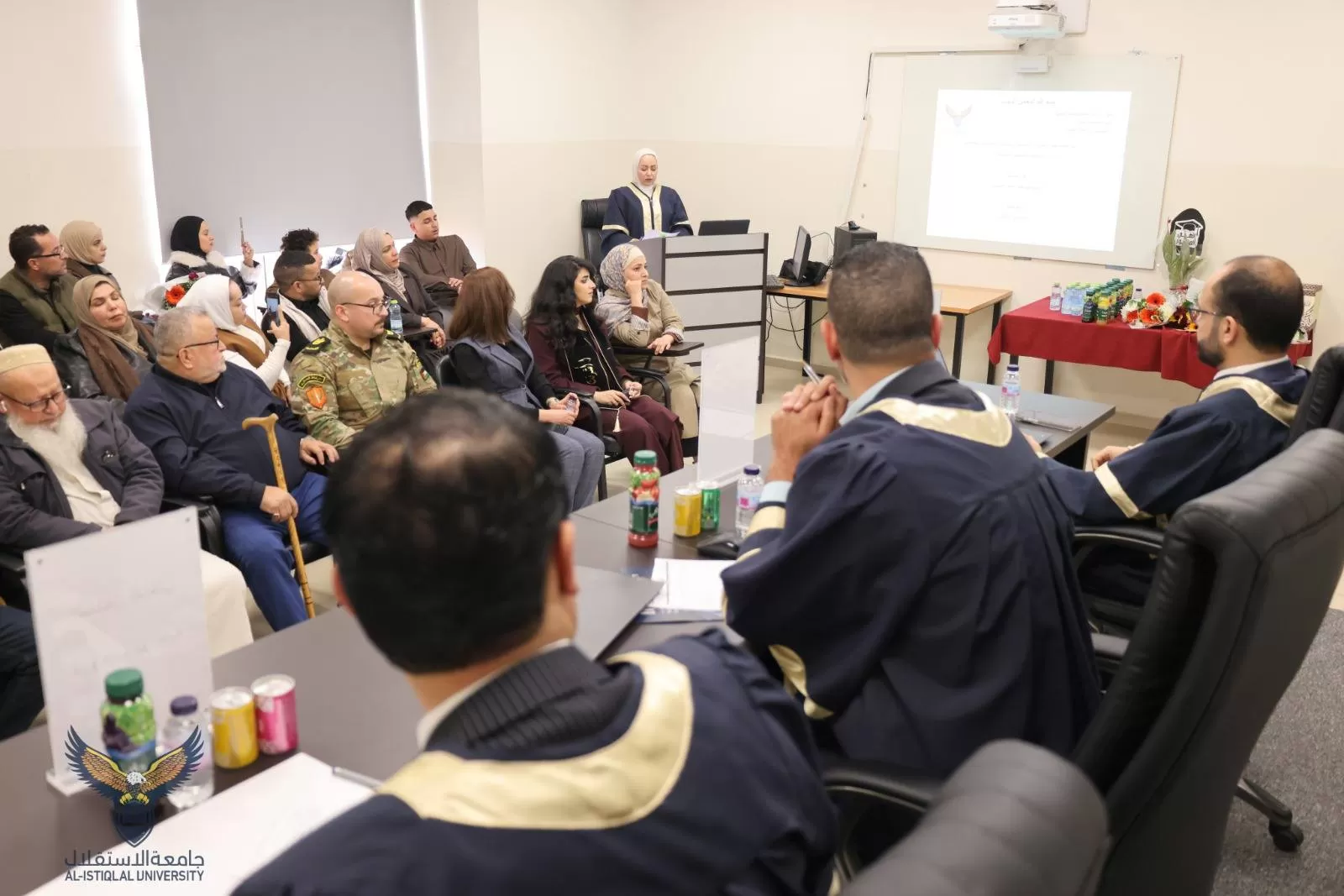 ناقشت كلية الدراسات العليا والبحث العلمي في جامعة الاستقلال اليوم الأحد رسالة ماجستير للطالبة أماني أمين عليان أشقر "عيساوي" والموسومة دور أنظمة الموارد البشرية الإلكترونية في تحسين فاعلية الأداء المؤسسي للجامعات الحكومية الفلسطينية.