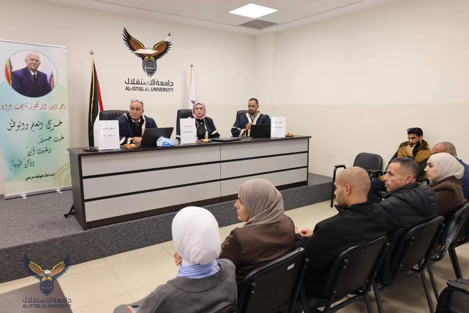 ناقشت كلية الدراسات العليا والبحث العلمي في جامعة الاستقلال اليوم الأحد رسالة ماجستير للطالبة ليالي علي ابراهيم مليح والموسومة فاعلية السياسات العامة في تحسين جودة الخدمات الصحية المقدمة للأشخاص ذوي الإعاقة في الضفة الغربية 2014-2024