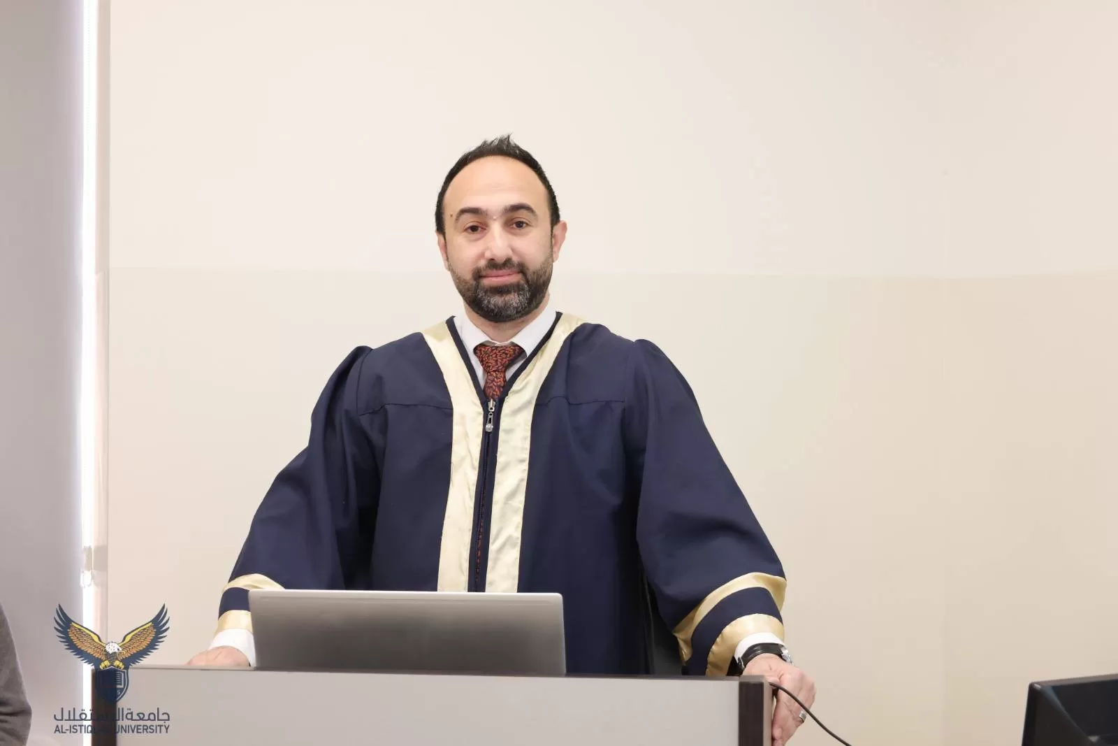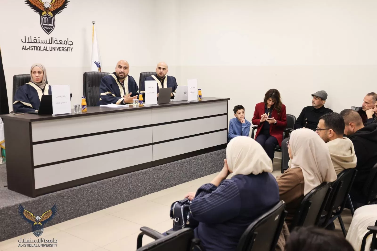 وتكونت لجنة المناقشة من د. محمد القواسمي (مشرفاً) و د. محمد الكرم (ممتحناً داخلياً)، و د. نجوان عبد الله (ممتحناً خارجياً).