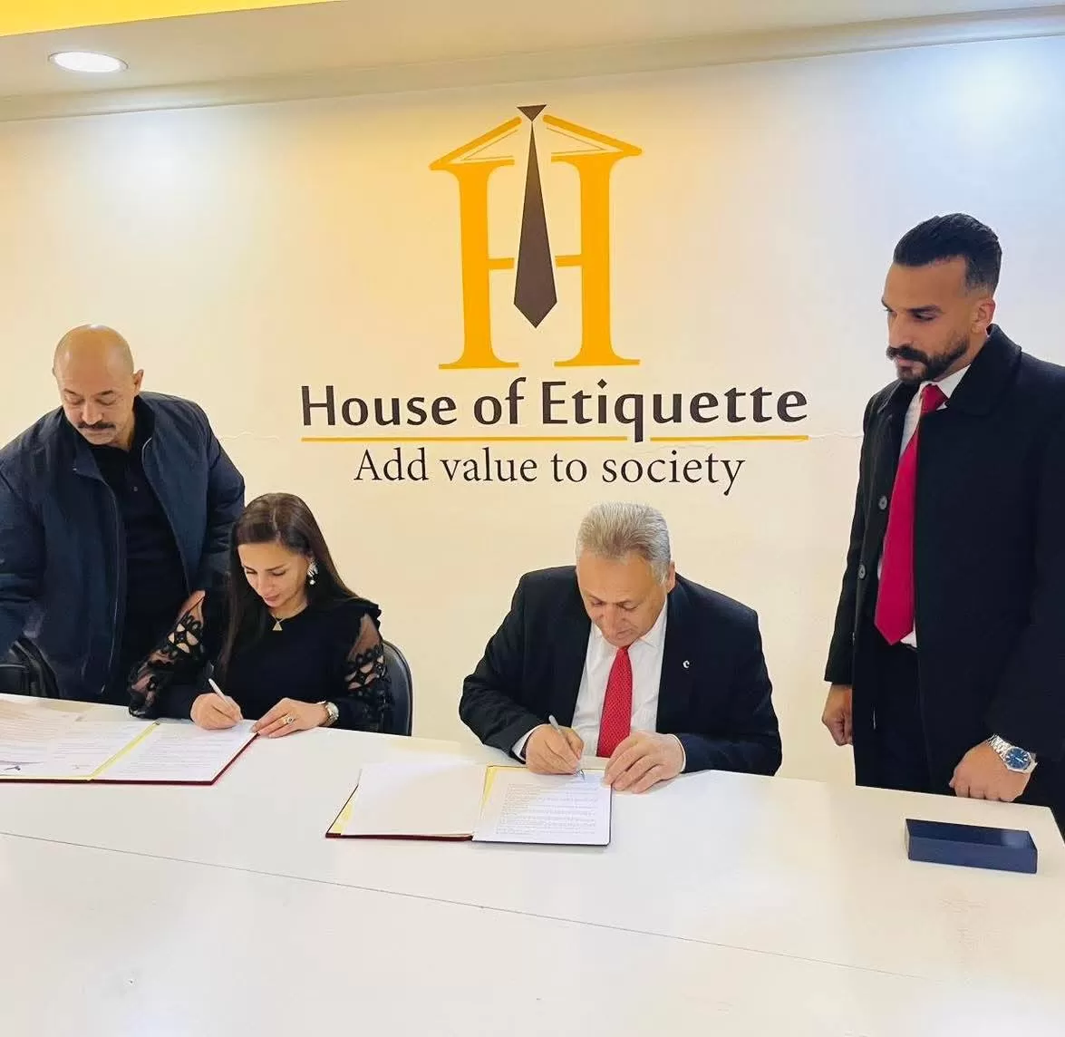 ومثل جامعة الاستقلال في توقيع الاتفاقية رئيسها الأستاذ الدكتور نور الدين أبو الرب، فيما مثل أكاديمية بيت الإتيكيت رئيستها المستشارة رامه العساف، بحضور سعادة السفير د.علي كريشان.