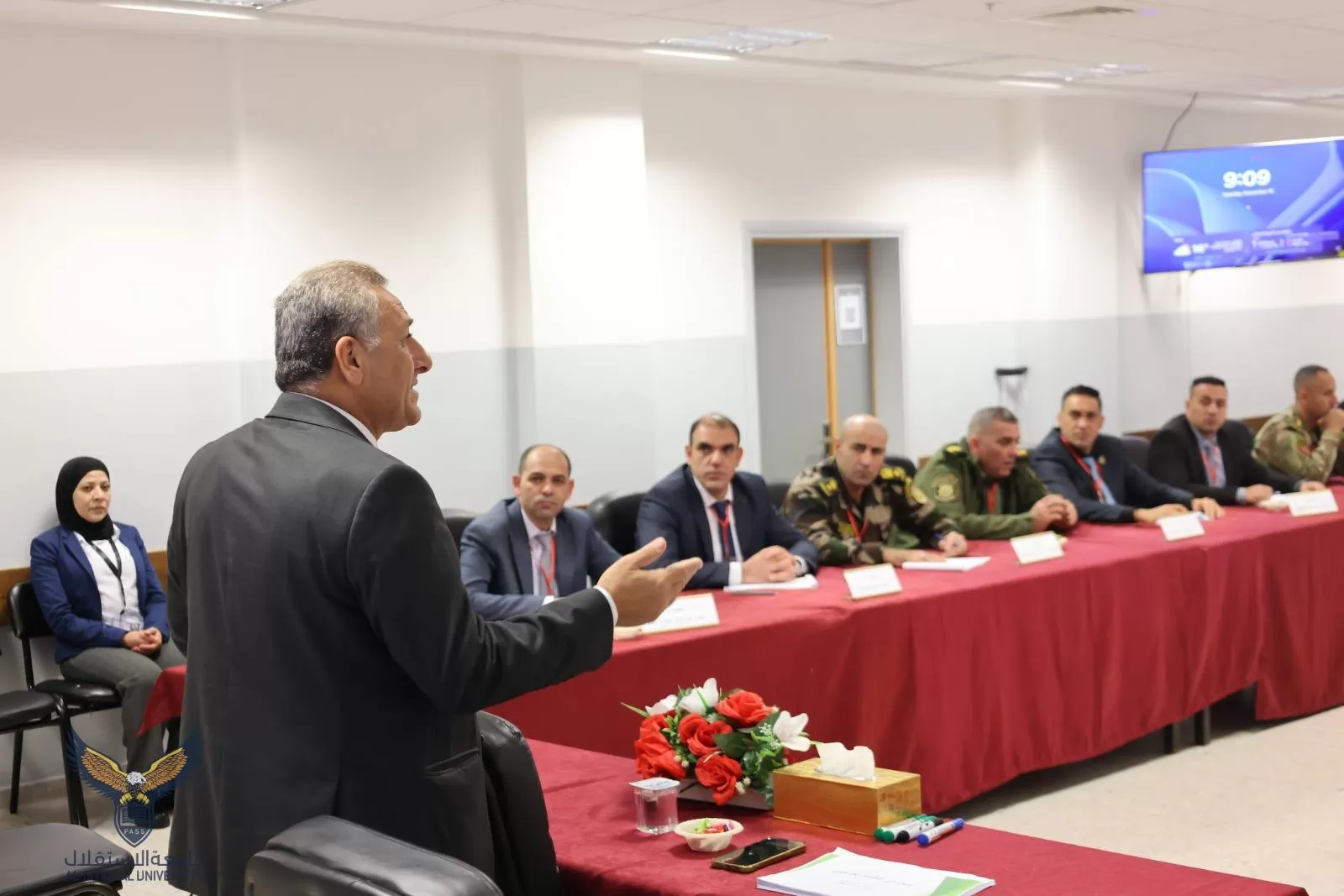 وأكد رئيس الجامعة على ان بناء القيادات لا يقتصر على الجوانب العسكرية والميدانية فحسب، بل يتطلب فهما عميقاً للأبعاد الإقتصادية والاجتماعية، باعتبارها عناصر أساسية في منظومة الأمن الفلسطيني الشامل، مشدداً على أهمية التكامل بين المعرفة الأكاديمية والتجربة العملية في تأهيل كبار الضباط.