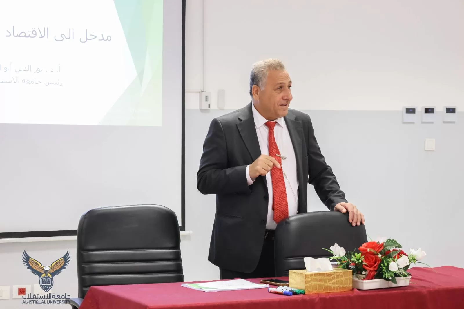 وتناول الأستاذ الدكتور أبو الرب خلال المحاضرة ملامح الإقتصاد الفلسطيني، وخصوصيته في ظل الواقع السياسي والاقتصادي القائم، مسلطاً الضوء على التحديات البنيوية التي يواجهها، ومحددات النمو، ودور المؤسسات الوطنية في تعزيز الصمود الإقتصادي وتحقيق قدر من الاستقلالية التنموية.