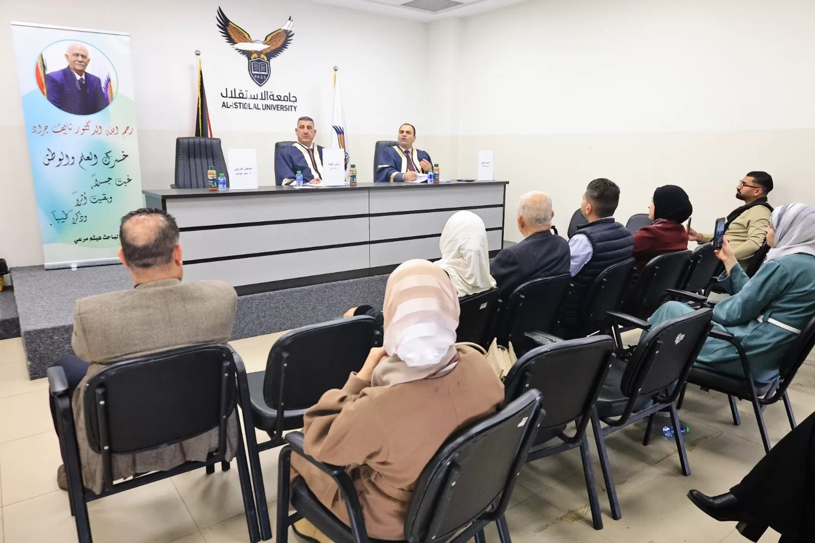 ناقشت كلية الدراسات العليا والبحث العلمي في جامعة الاستقلال رسالة ماجستير تقدّمت بها الطالبة دعاء نعيم خصيب- قسم القانون الجنائي الدولي والتي جاءت موسومة ب: “الحق قي حرية الحركة والتنقل من منظور القانون الدولي (دراسة للحالة الفلسطينية)"