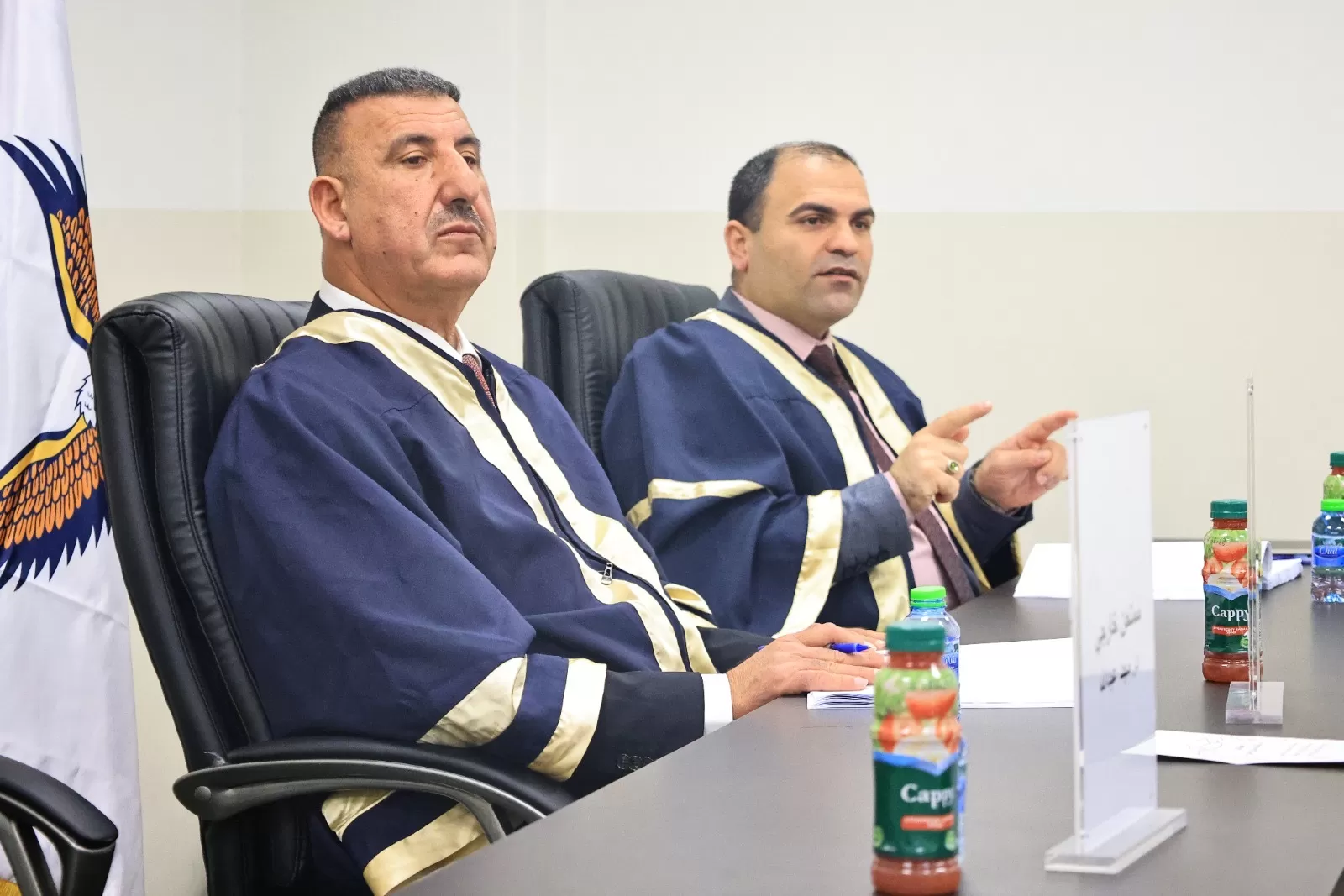 وتكونت لجنة المناقشة من د. عمر بزور مشرفًا على الرسالة، د. مجد عبد الله ممتحنًا خارجيًا، د.محمد شتية ممتحنًا داخليًا.