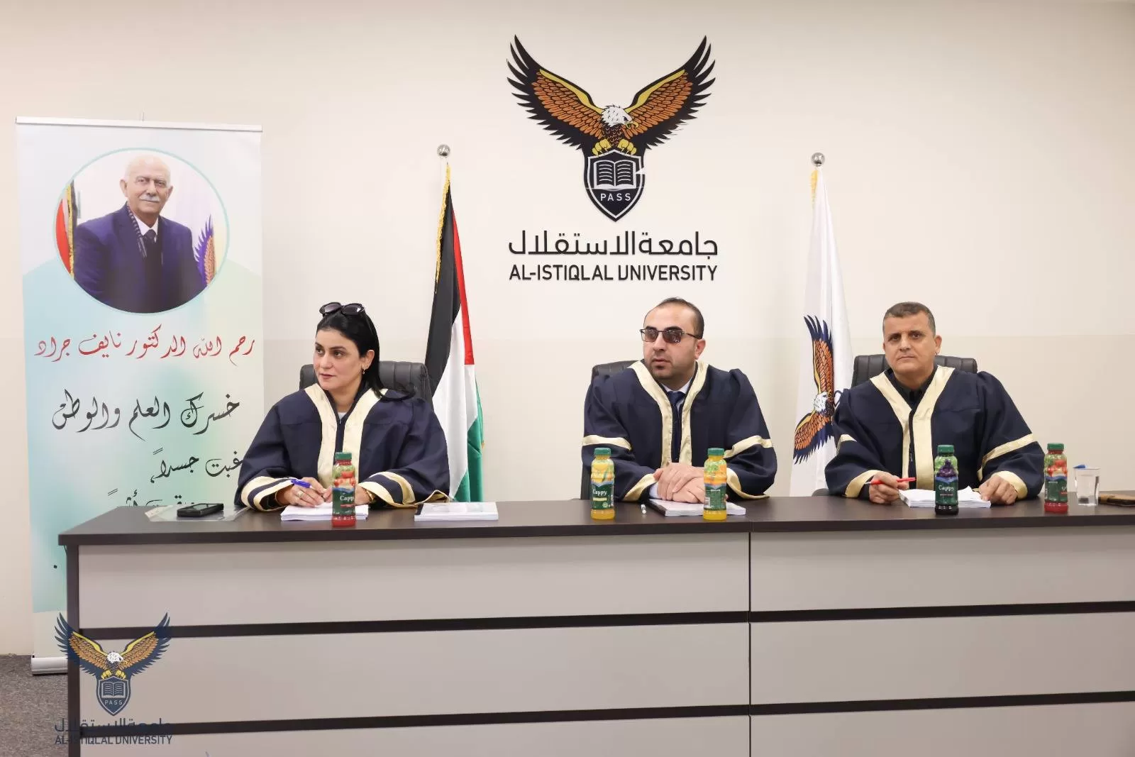 وفي الختام، أشادت اللجنة بجهود الباحث وبعرضه المتميز لموضوع الدراسة، وأوصت بنجاحه بعد الأخذ بعين الاعتبار الملاحظات اللازمة، لإثراء الجانب البحثي في الدراسة.