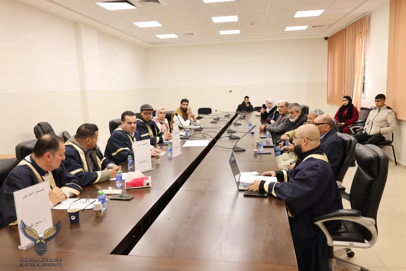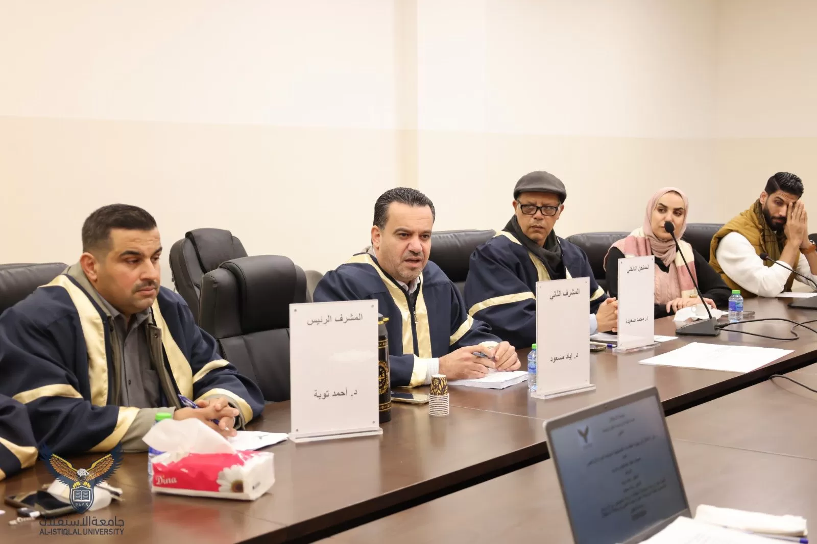 وتكونت لجنة المناقشة من د.أحمد توبة مشرفًا أول على الرسالة، د. إياد مسعود مشرفاً ثان، د. سامح القبج ممتحنًا خارجيًا، د. محمد الصعايدة ممتحنًا داخليًا.