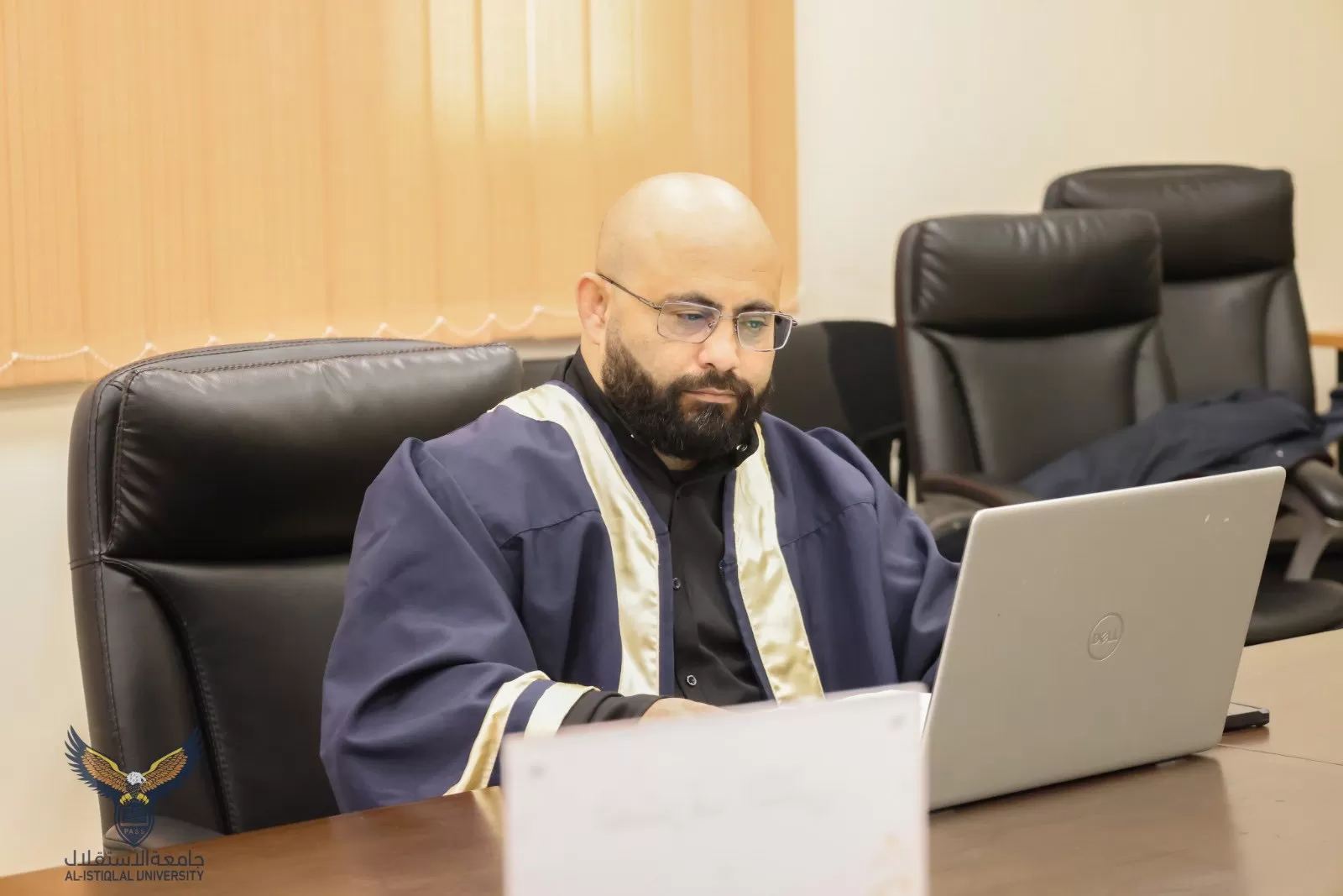ناقشت كلية الدراسات العليا والبحث العلمي- قسم الدراسات الفلسطينية في جامعة الاستقلال رسالة ماجستير تقدّم بها الطالب مصعب عايد حروب الموسومة ب "دور الاحتلال في تهويد المقدسات الفلسطينية انموذجا الحرم الابراهيمي".