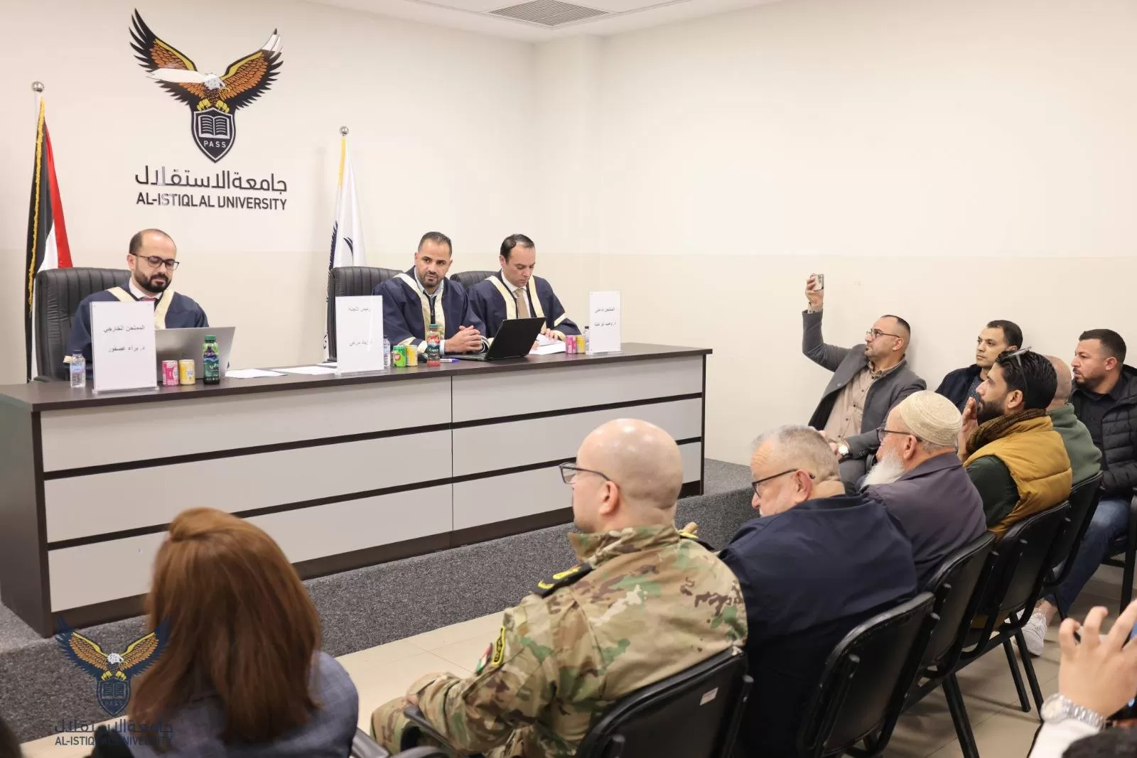 وتكونت لجنة المناقشة من د.زياد شرقاوي ( مشرفاً )، و د. وهيب أبو علبة (ممتحناً داخلياً)، و د. براء عصفور (ممتحناً خارجياً).