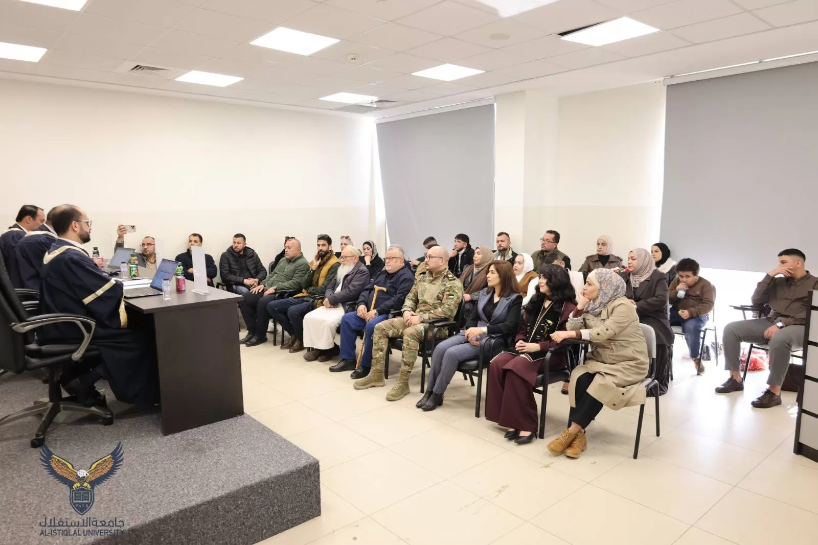ناقشت كلية الدراسات العليا والبحث العلمي في جامعة الاستقلال اليوم الأحد رسالة ماجستير للطالبة أماني أمين عليان أشقر "عيساوي" والموسومة دور أنظمة الموارد البشرية الإلكترونية في تحسين فاعلية الأداء المؤسسي للجامعات الحكومية الفلسطينية.