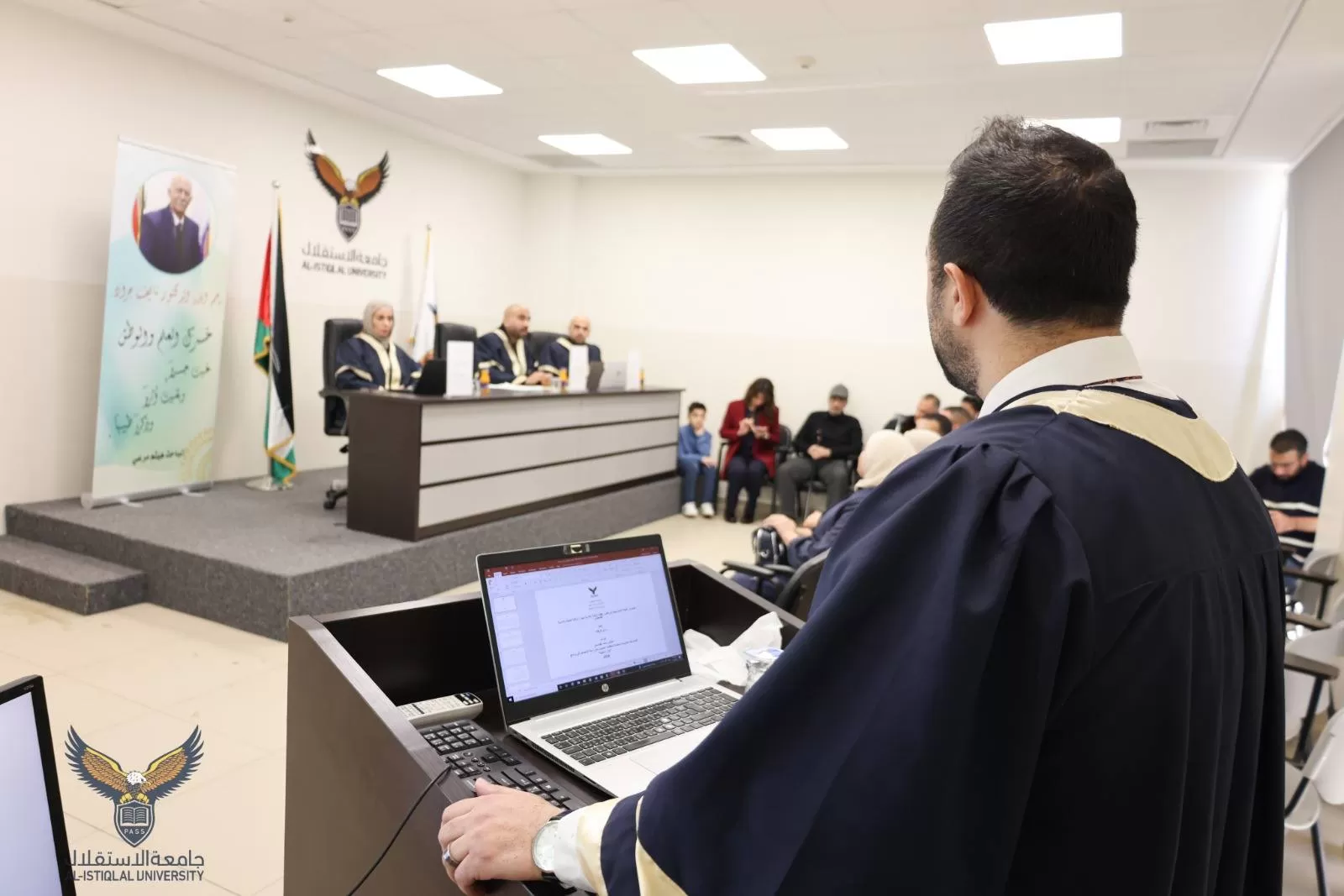 ناقشت كلية الدراسات العليا والبحث العلمي في جامعة الاستقلال اليوم الإثنين رسالة ماجستير للطالب رامي عريقات والموسومة تقييم دور القيادة الاستراتيجية في تطوير أنظمة الرقابة الإدارية بديوان الرقابة المالية والإدارية الفلسطيني.