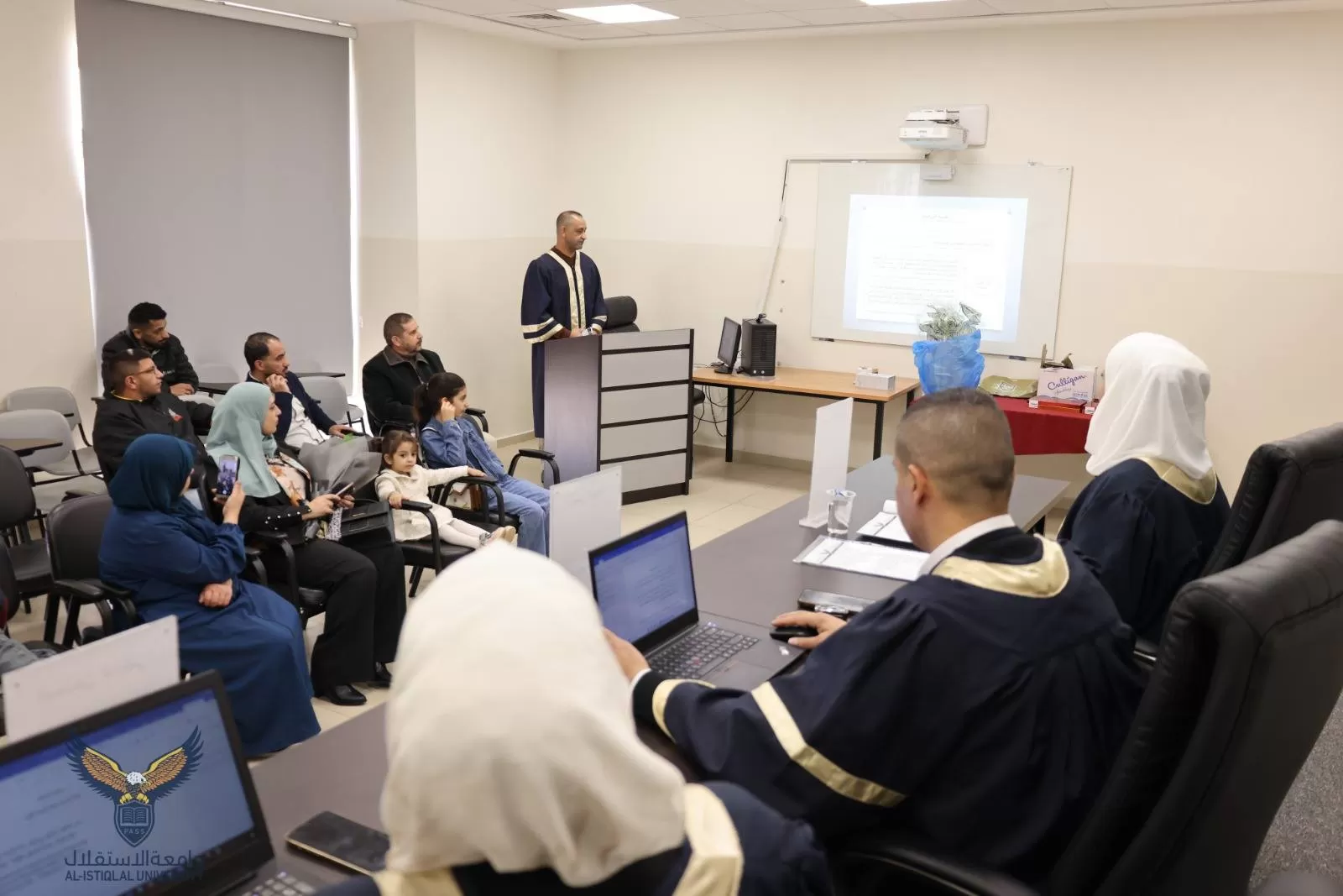 ناقشت كلية الدراسات العليا والبحث العلمي في جامعة الاستقلال اليوم الثلاثاء رسالة ماجستير للطالب محمد خليل شحادة المصري والموسومة دور التمكين الإداري في تعزيز إدارة الأزمات في الجامعات الحكومية الفلسطينية، جامعة فلسطين التقنية- خضوري انموذجاً