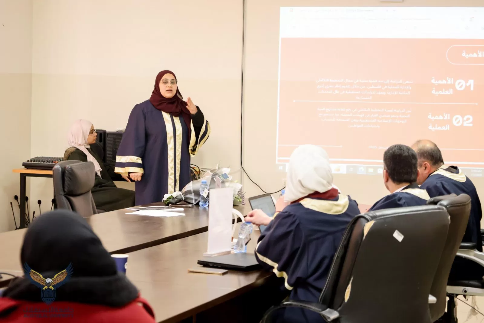 مناقشة رسالة ماجستير حول التخطيط التكاملي وعلاقته بفعالية إدارة مشاريع البنية التحتية دراسة تطبيقية على الهيئات المحلية شمال رام اللّٰه والبيرة