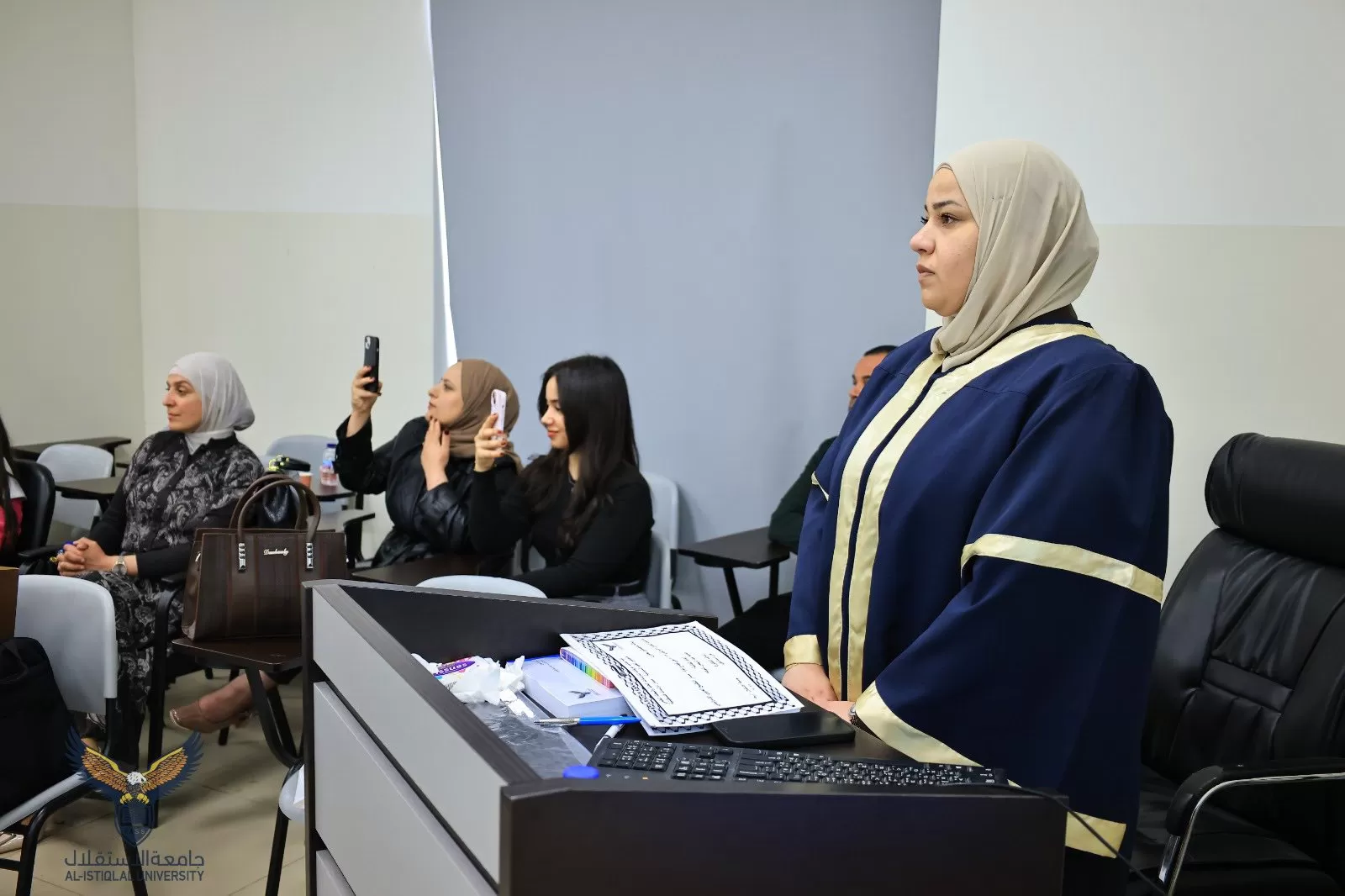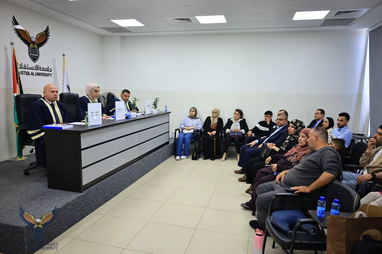 ناقشت كلية الدراسات العليا والبحث العلمي في جامعة الاستقلال، اليوم الثلاثاء، رسالة ماجستير للطالبة صفية شوخة و الموسومة" تداعيات العدوان الإسرائيلي 2023 على قطاع غزة – مسار التطبيع العربي الإسرائيلي".