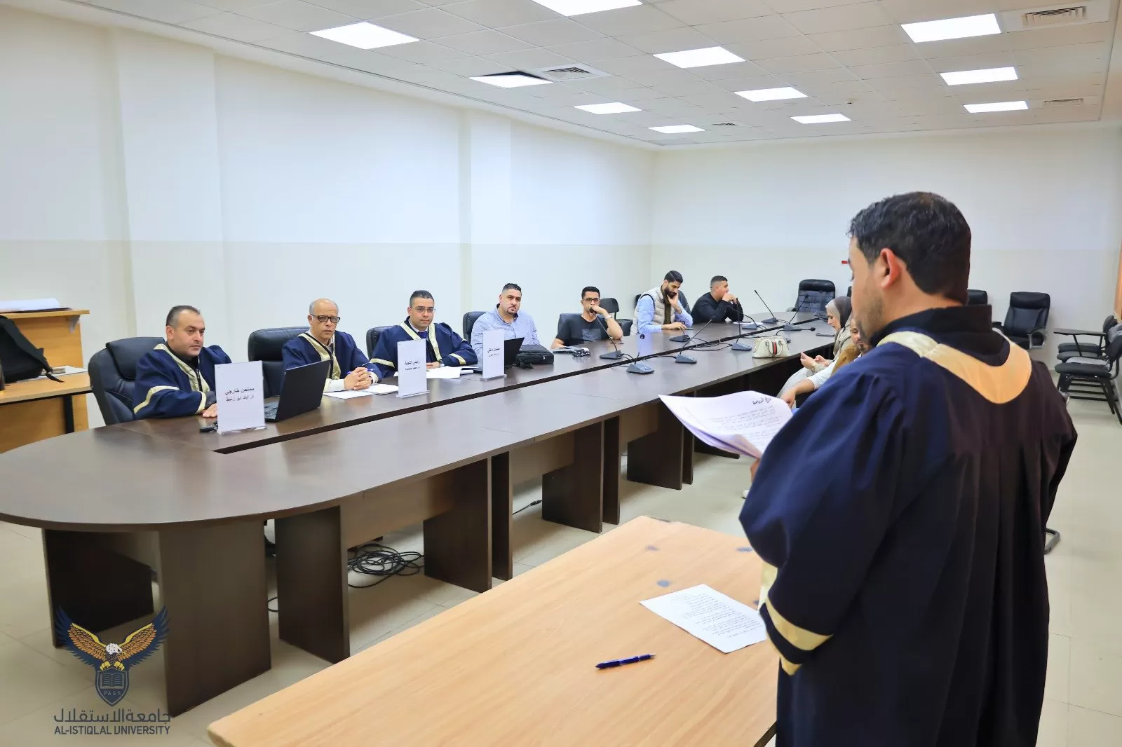وتكونت لجنة المناقشة من د. محمد صعايدة (مشرفًا) و د. سائد عدوان (ممتحنًا داخليًا)، و د. إياد أبو زنيط (ممتحنًا خارجيًا).
