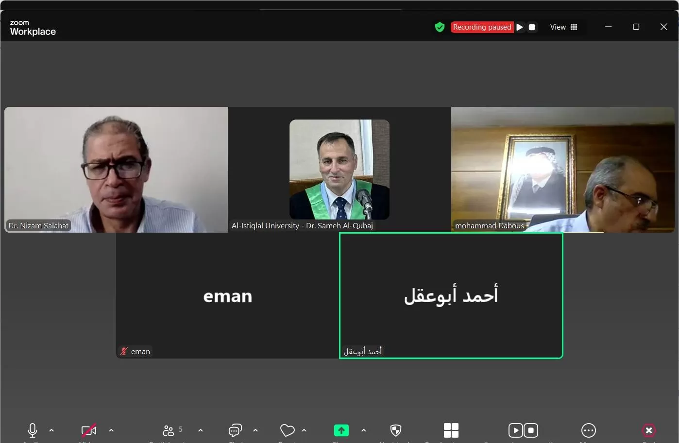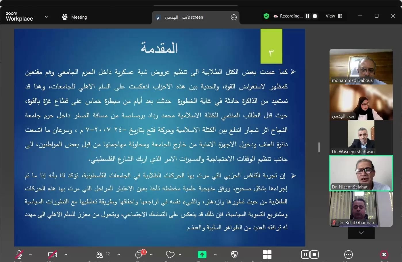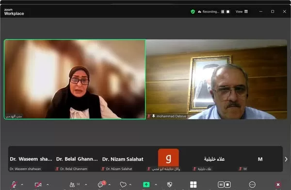 ناقشت كلية الدراسات العليا والبحث العلمي في جامعة الاستقلال اليوم الإثنين رسالة ماجستير الكترونياً للطالبة منى الهدمي والموسومة " التنافس الحزبي وتأثيره على السلم الأهلي من وجهة نظر طلبة الجامعات الفلسطينية-جامعة الخليل نموذجاً ".
