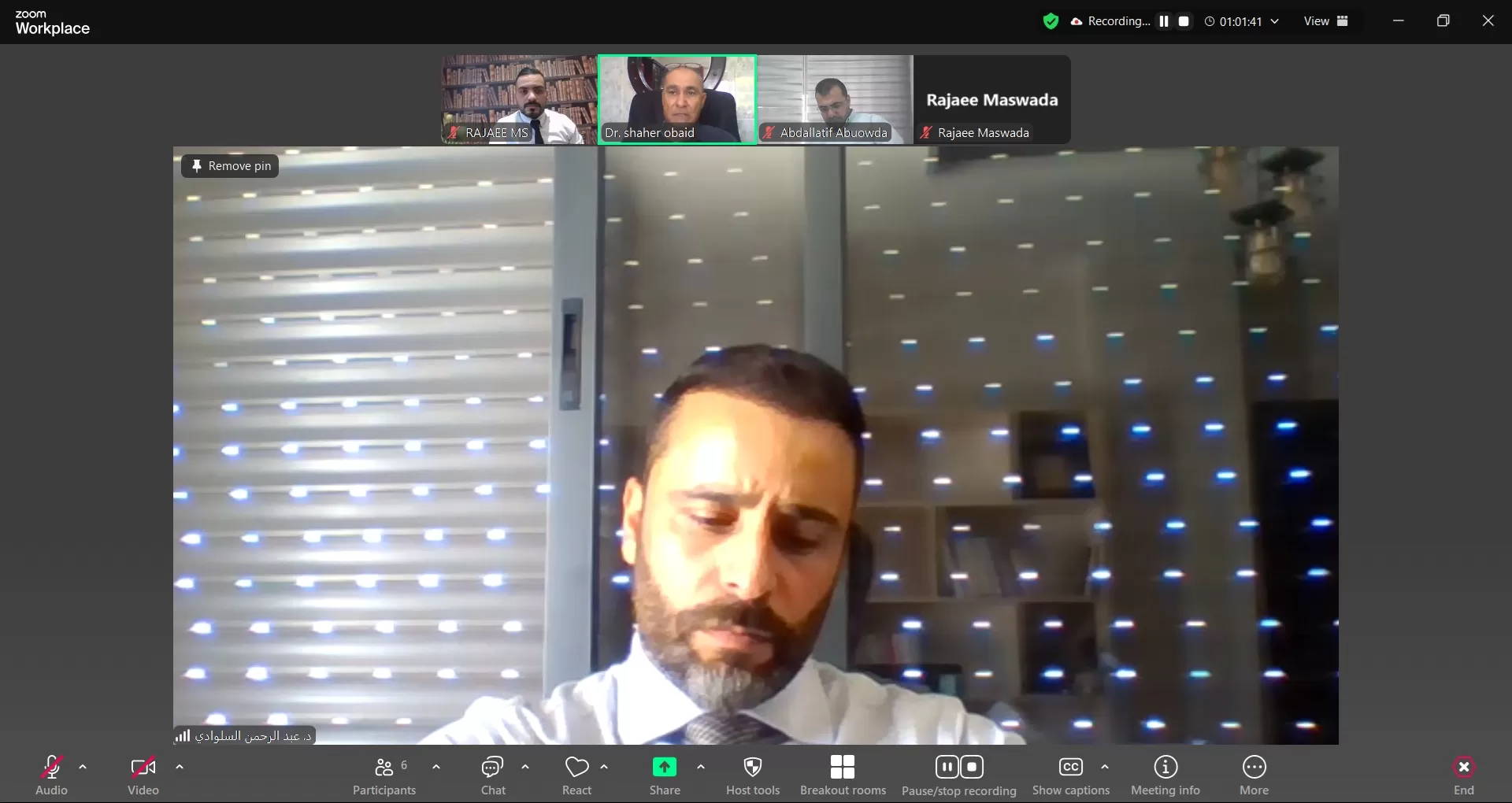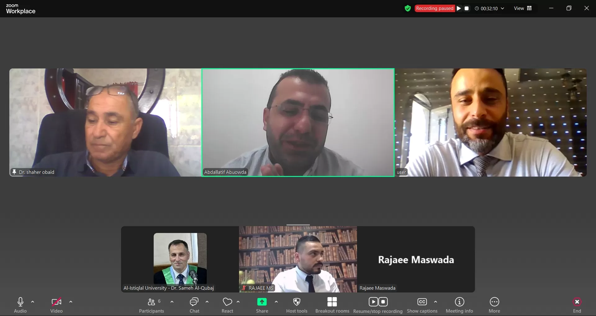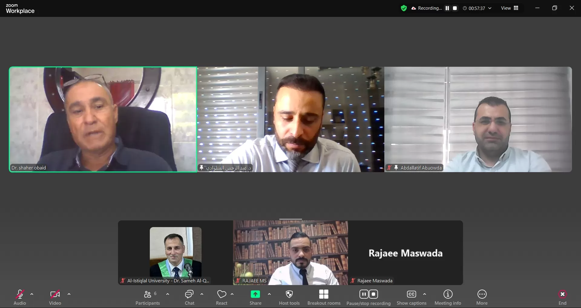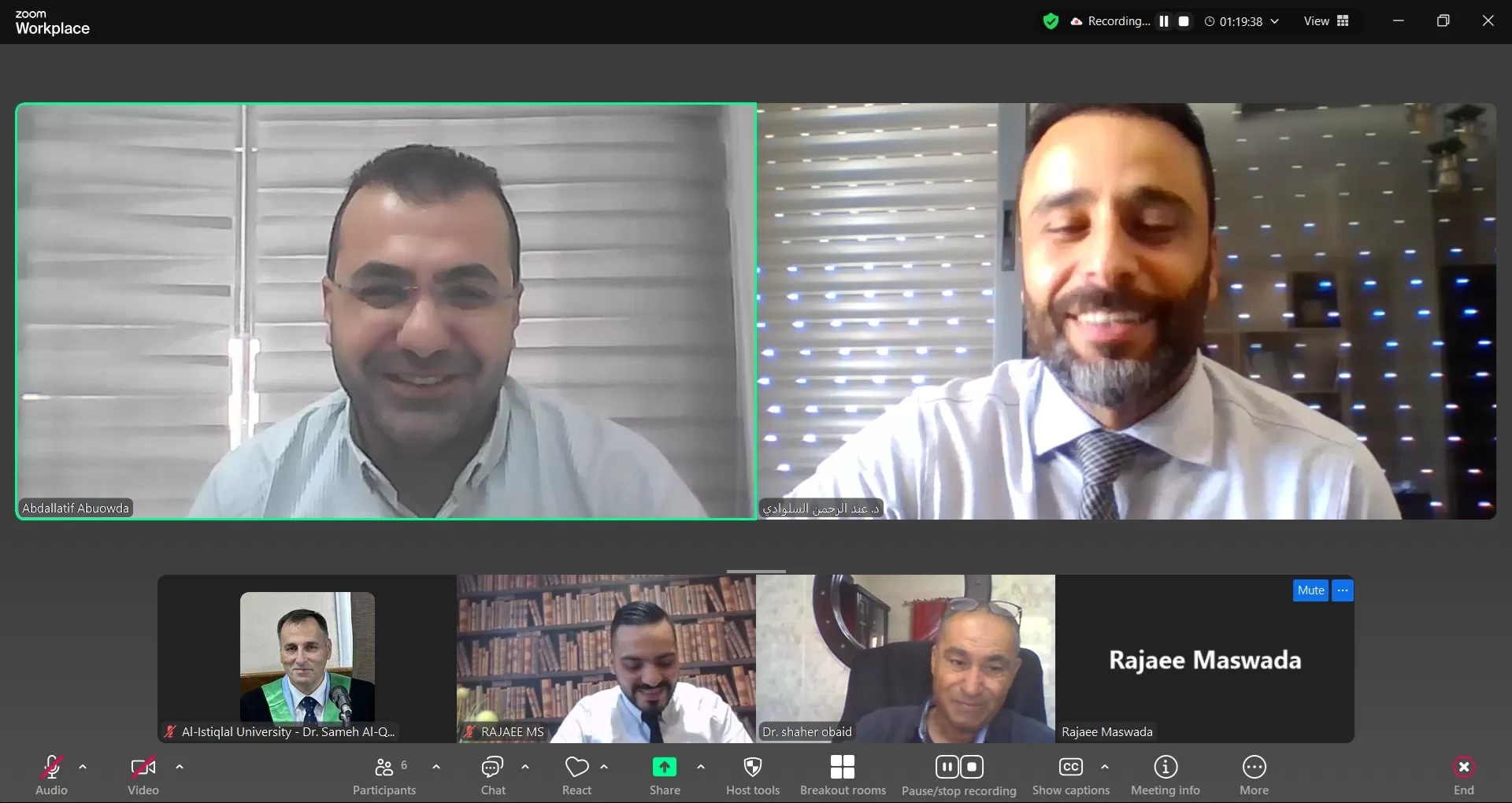 وفي الختام، أشادت اللجنة بجهود الباحث وبعرضه المتميز لموضوع الدراسة، وأوصت بنجاحه بعد الأخذ بعين الاعتبار الملاحظات اللازمة، لإثراء الجانب البحثي في الدراسة.