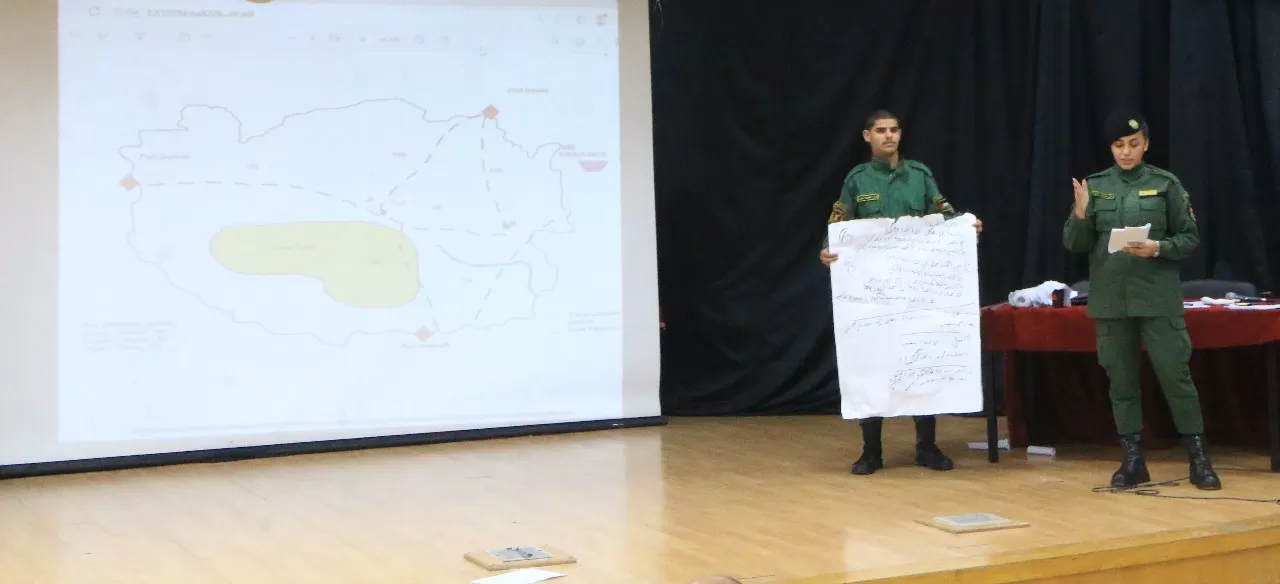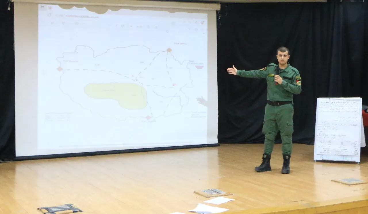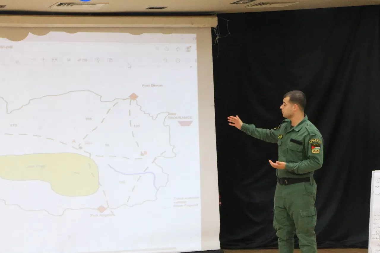 واشتملت المحاضرة على شرح موجز وعلمي لأساسيات عمل البوصلة وقراءة الخرائط العسكرية، بالإضافة إلى آليات وضع خطة عسكرية وأمنية مبسطة تتضمن مسارات عمل واضحة وخطاً زمنياً دقيقاً للتنفيذ، بما يعزز من قدرات الطلبة التفاعلية والتطبيقية في مجالات التخطيط الميداني.