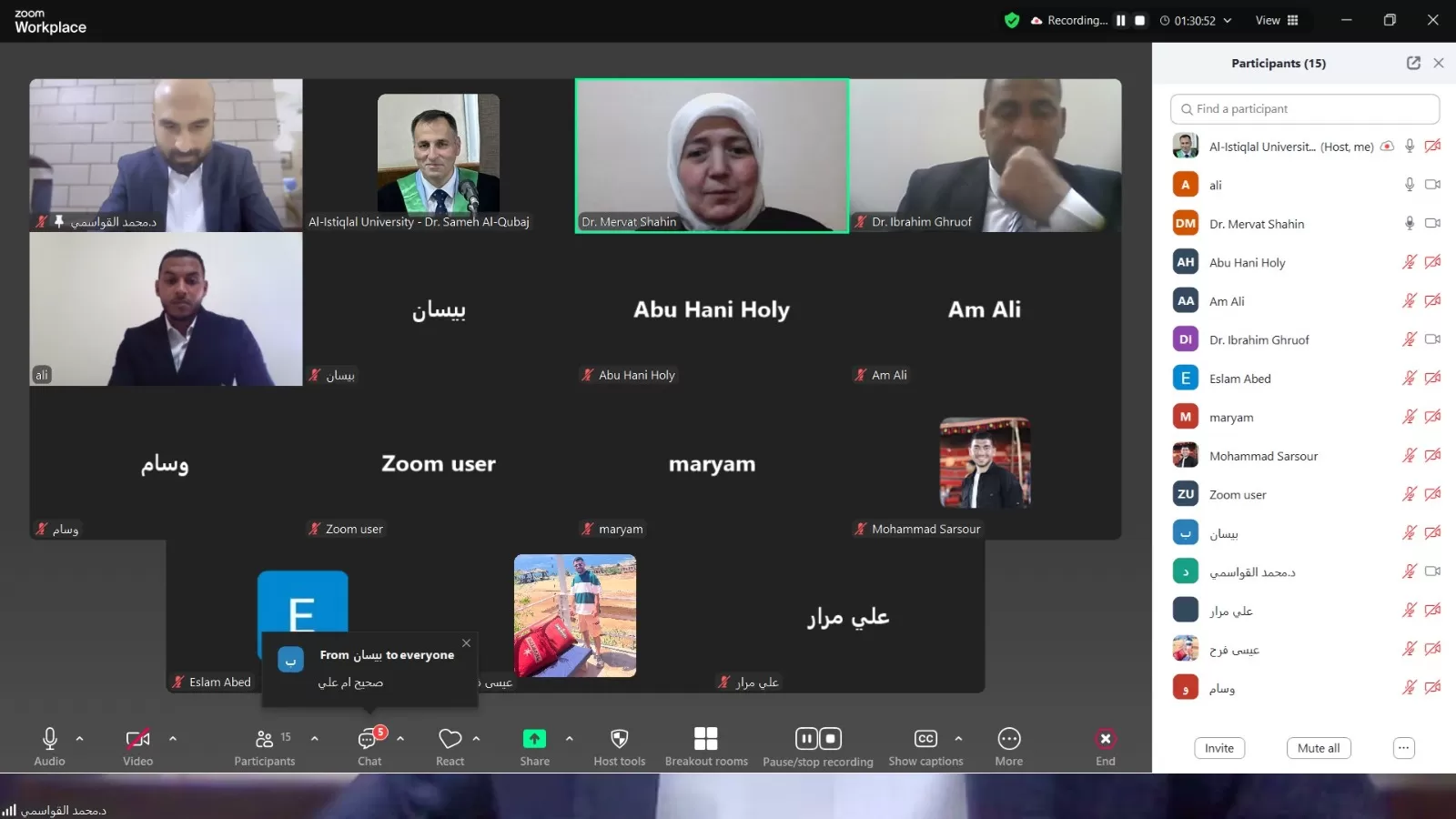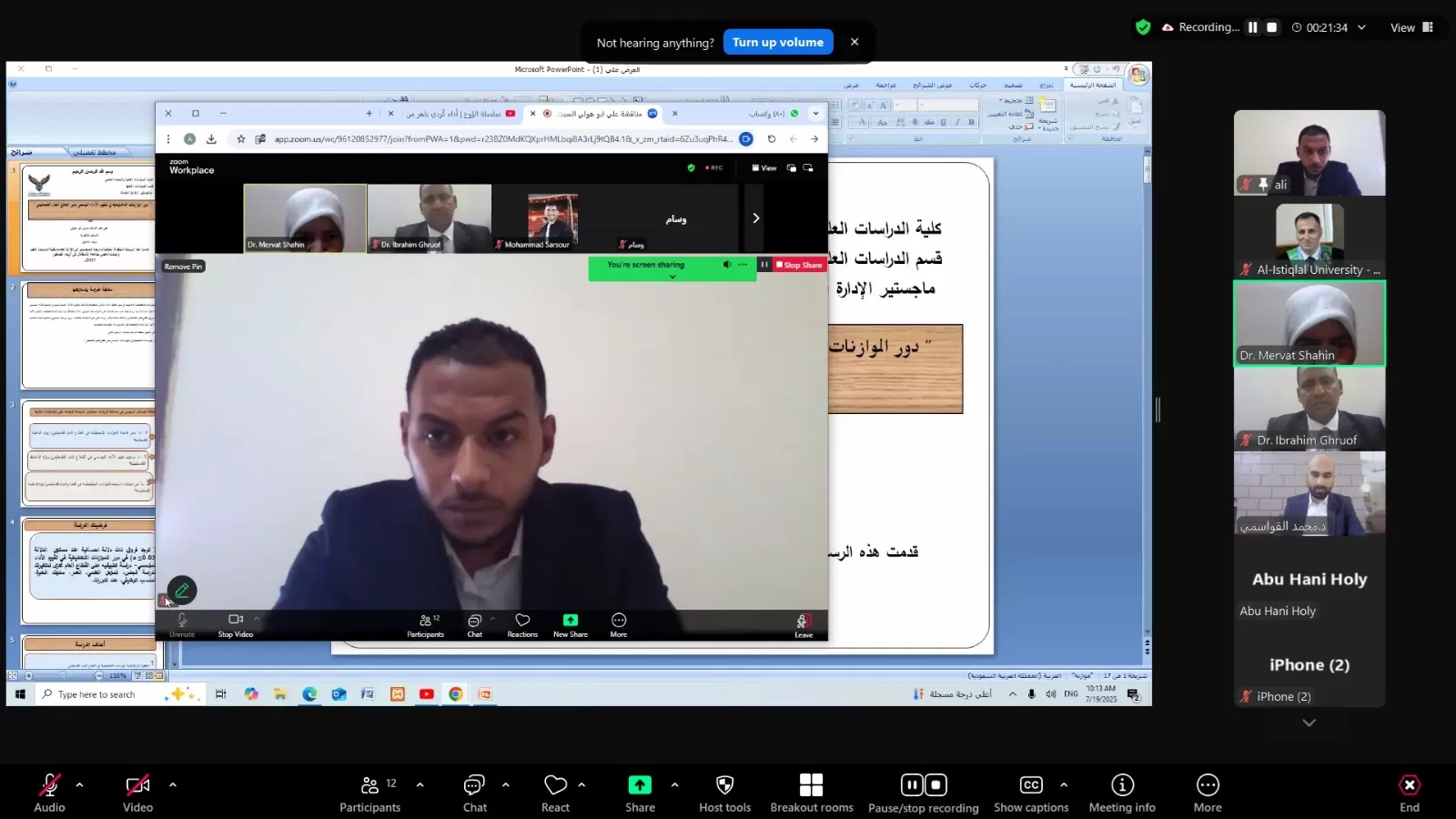 ناقشت كلية الدراسات العليا والبحث العلمي في جامعة الاستقلال اليوم السبت رسالة ماجستير الكترونياً للطالب علي أبو هولي والموسومة " دور الموازنات التخطيطية في تقييم الأداء المؤسسي على القطاع العام الفلسطيني ".