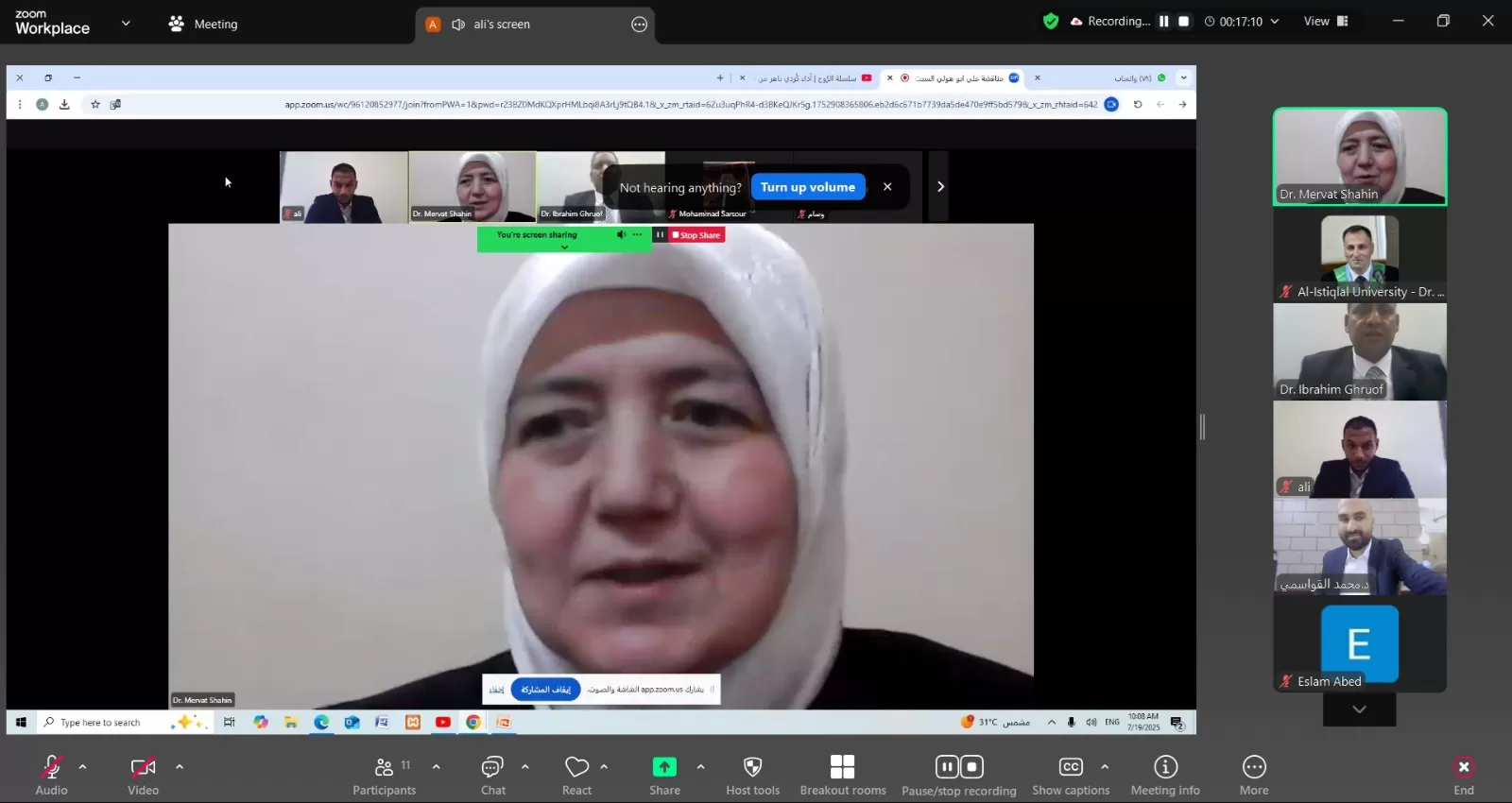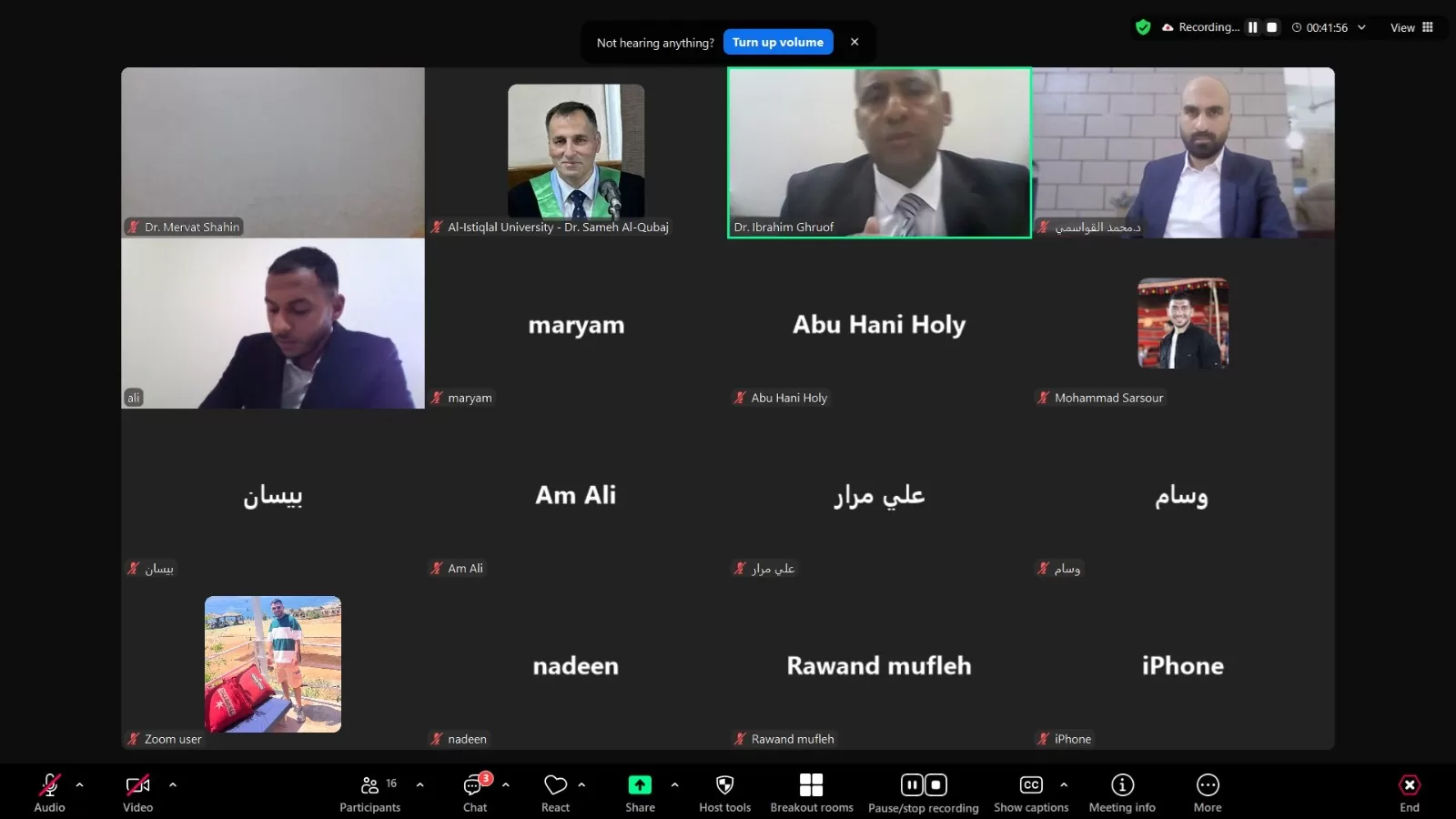 وتكونت لجنة المناقشة من د. مرفت شاهين(مشرفاً) و د. محمد القواسمي (ممتحناً داخلياً)، و د. إبراهيم الغروف (ممتحناً خارجياً) .