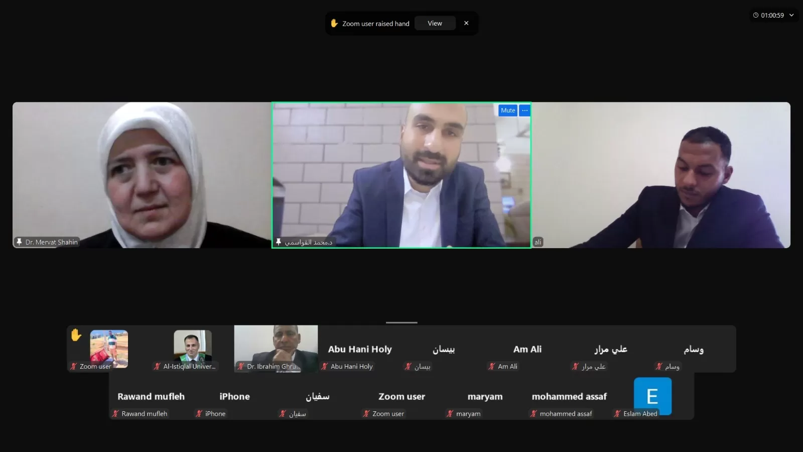 وفي الختام، أشادت اللجنة بجهود الباحث وبعرضه المتميز لموضوع الدراسة، وأوصت بنجاحه بعد الأخذ بعين الاعتبار الملاحظات اللازمة، لإثراء الجانب البحثي في الدراسة.