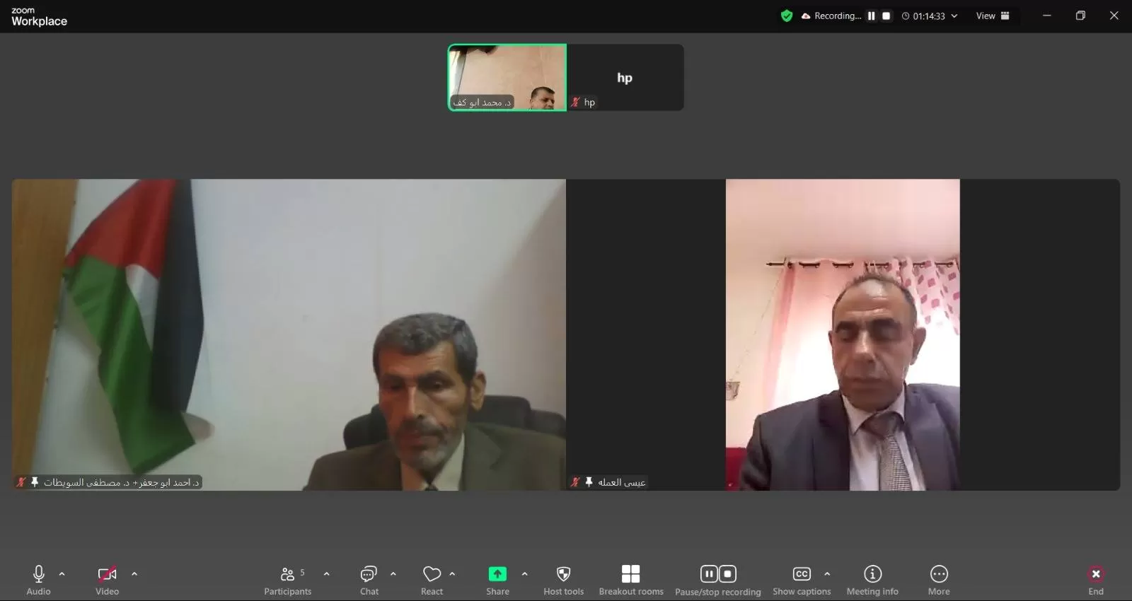 وتكونت لجنة المناقشة من د. أحمد أبو جعفر(مشرفاً) و د. محمد أبو كف(ممتحناً داخلياً)، و د. مصطفى سويطات(ممتحناً خارجياً) .