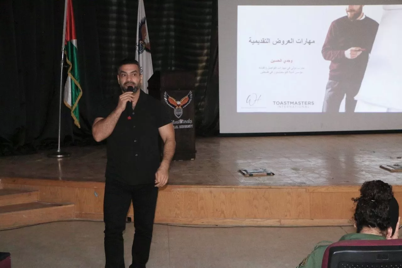 الجلسة جمعت بين المعرفة النظرية والتطبيق العملي، وهدفت إلى تطوير مهارات الطلبة في الإلقاء، والتأثير، والتواصل المؤثر، حيث قادهم المدرب وجدي الحسين في رحلة مركزة وعميقة حول بناء العروض التقديمية المؤثرة والفعالة.