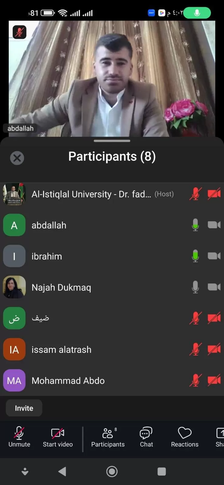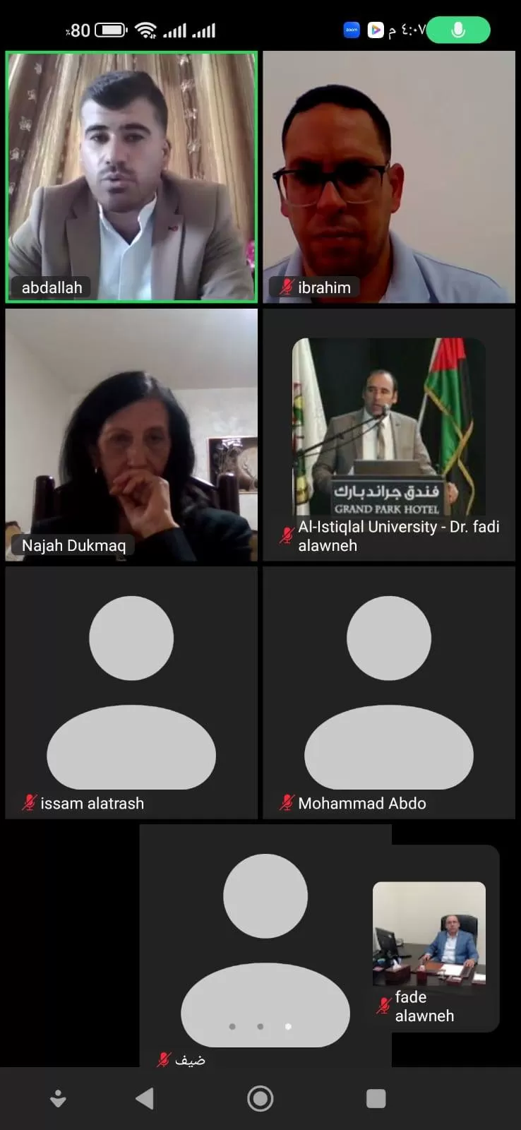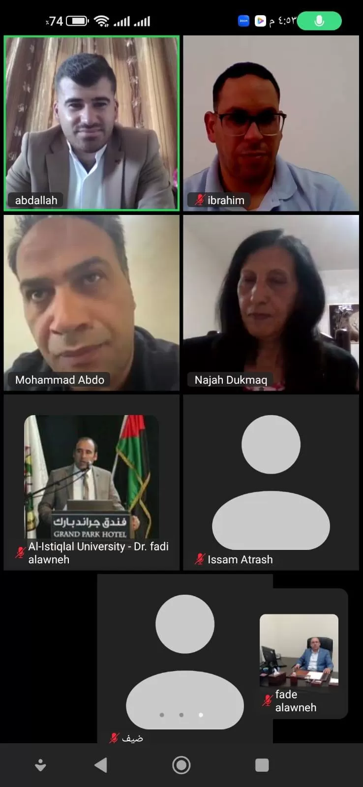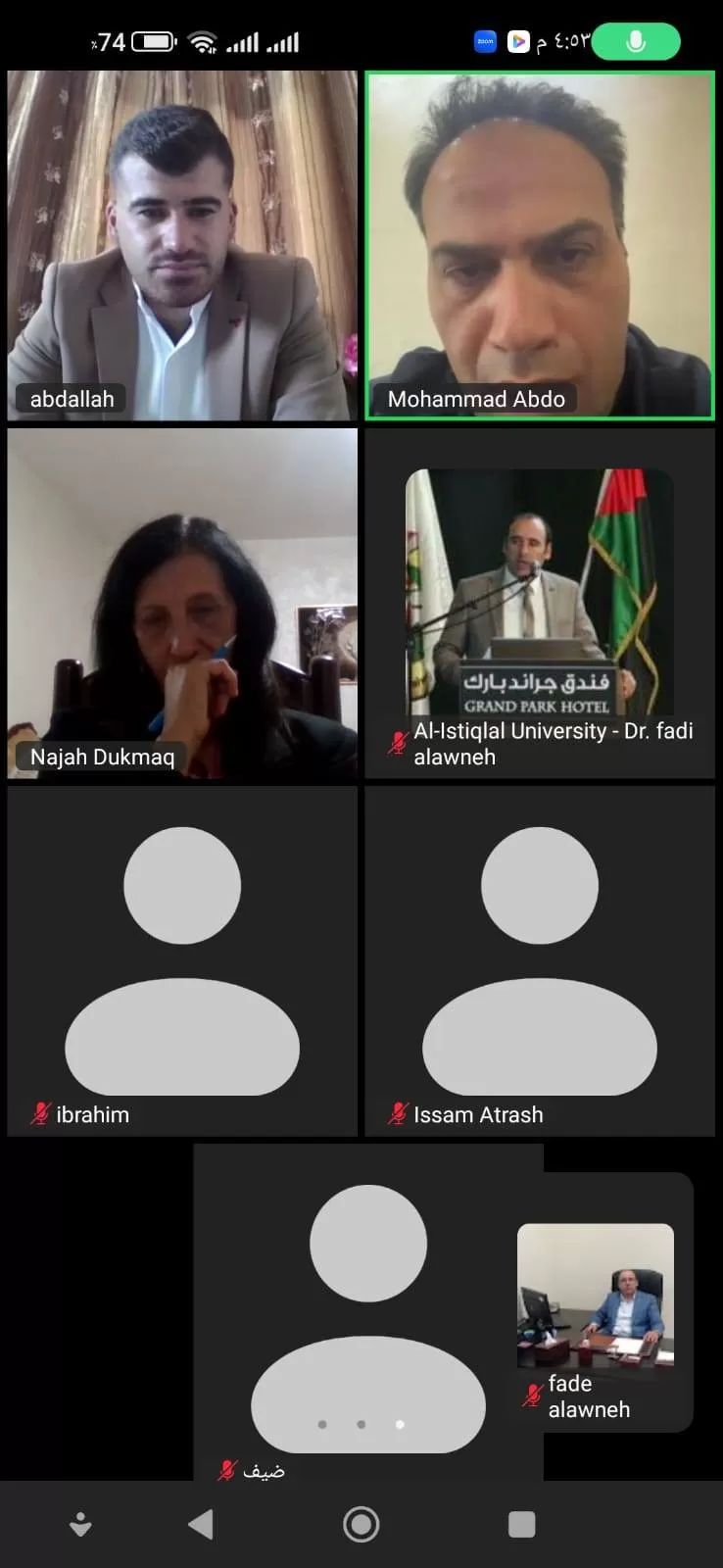 ناقشت كلية الدراسات العليا والبحث العلمي في جامعة الاستقلال اليوم الأربعاء رسالة ماجستير الكترونياً للطالب عبد الله وليد جميل صعابنه والموسومة "سلب الأراضي وسياسة الاستيطان الإسرائيلي في الضفة الغربية في ضوء القانون الدولي ".