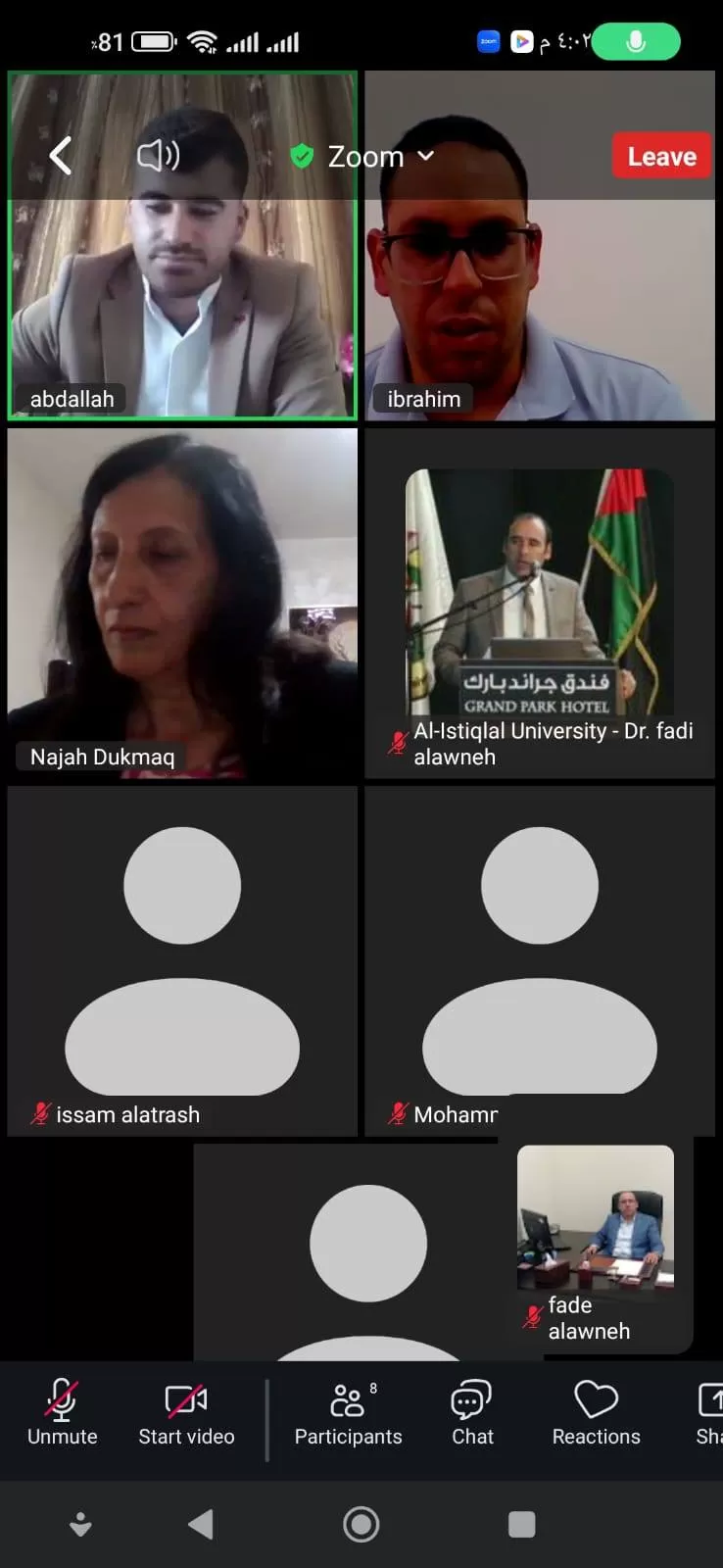 وتكونت لجنة المناقشة من د. إبراهيم البطش (مشرفاً) و د. محمد عبده (ممتحناً داخلياً)، و د. نجاح دقماق (ممتحناً خارجياً).