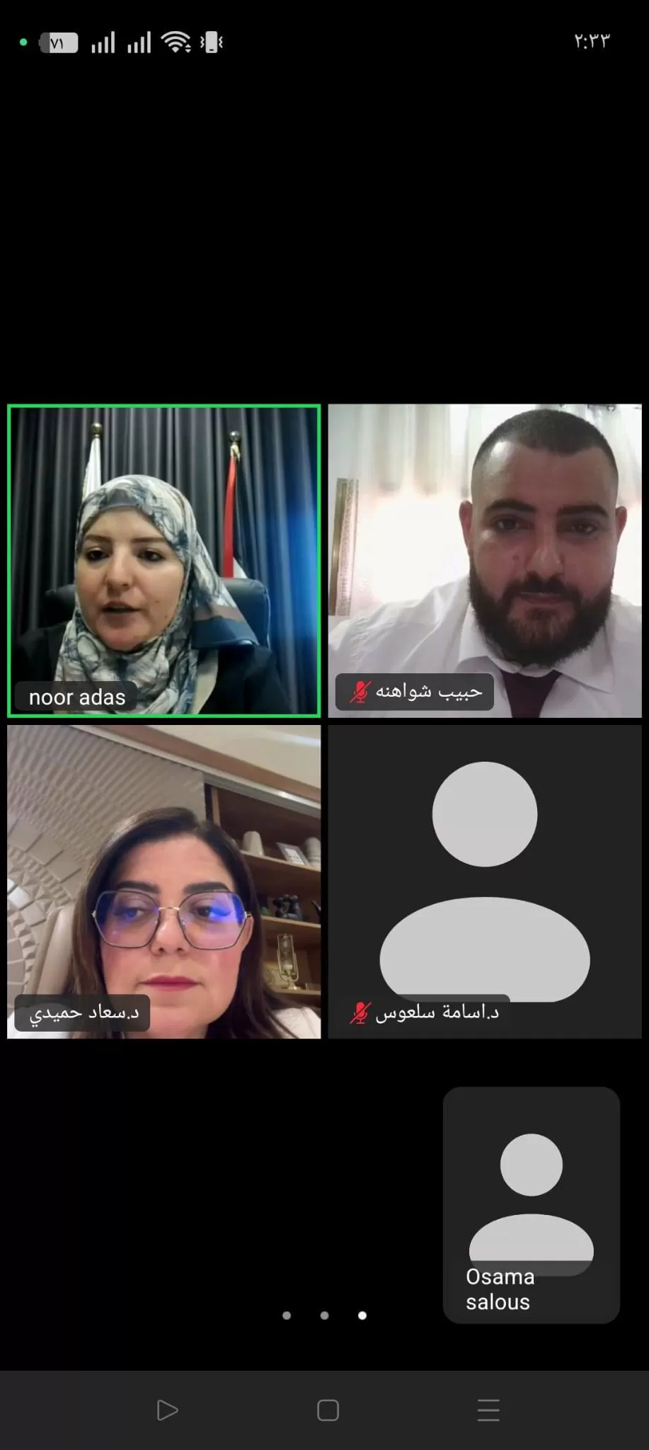 ناقشت كلية الدراسات العليا والبحث العلمي في جامعة الاستقلال اليوم الخميس رسالة ماجستير الكترونياً للطالب حبيب خالد موسى شواهنة والموسومة “الجهات الرسمية للتحقيق عن الدليل الإلكتروني طبقاً للقوانين السارية في فلسطين ".