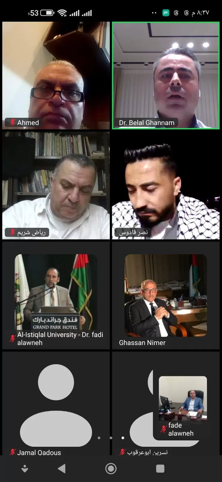 ناقشت كلية الدراسات العليا والبحث العلمي في جامعة الاستقلال اليوم الخميس رسالة ماجستير الكترونياً للطالب نصر قادوس والموسومة "دور لجان الإصلاح في تحقيق السلم الأهلي من وجهة نظر رؤساء وأعضاء المجالس القروية والبلدية في محافظة نابلس، تل وعراق بورين أنموذجاً"