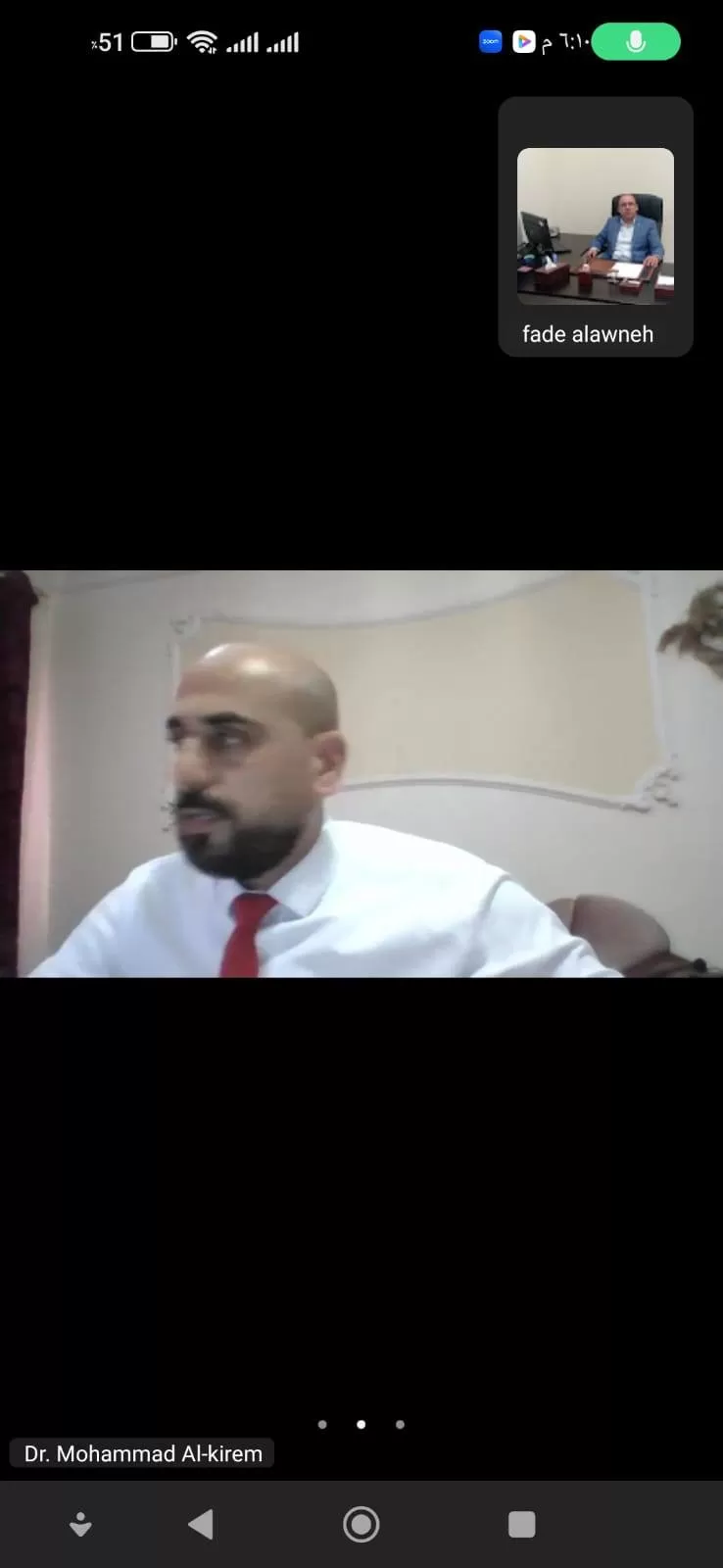 وتكونت لجنة المناقشة من د.محمد الكرم (مشرفاً) و د.ميرفت شاهين (ممتحناً داخلياً)، و د . فادي أبو دياك(ممتحناً خارجياً).