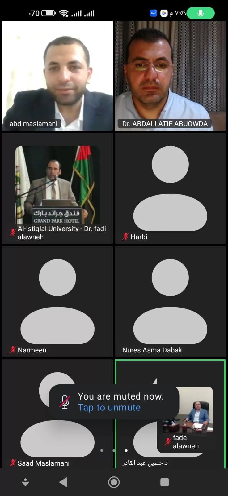 ناقشت كلية الدراسات العليا والبحث العلمي في جامعة الاستقلال اليوم الإثنين رسالة ماجستير الكترونياً للطالب عبد الرحمن مسلماني والموسومة "الذكاء العاطفي ودوره في إدارة حل الصراعات التنظيمية من وجهة نظر موظفي وزارات دولة فلسطين"