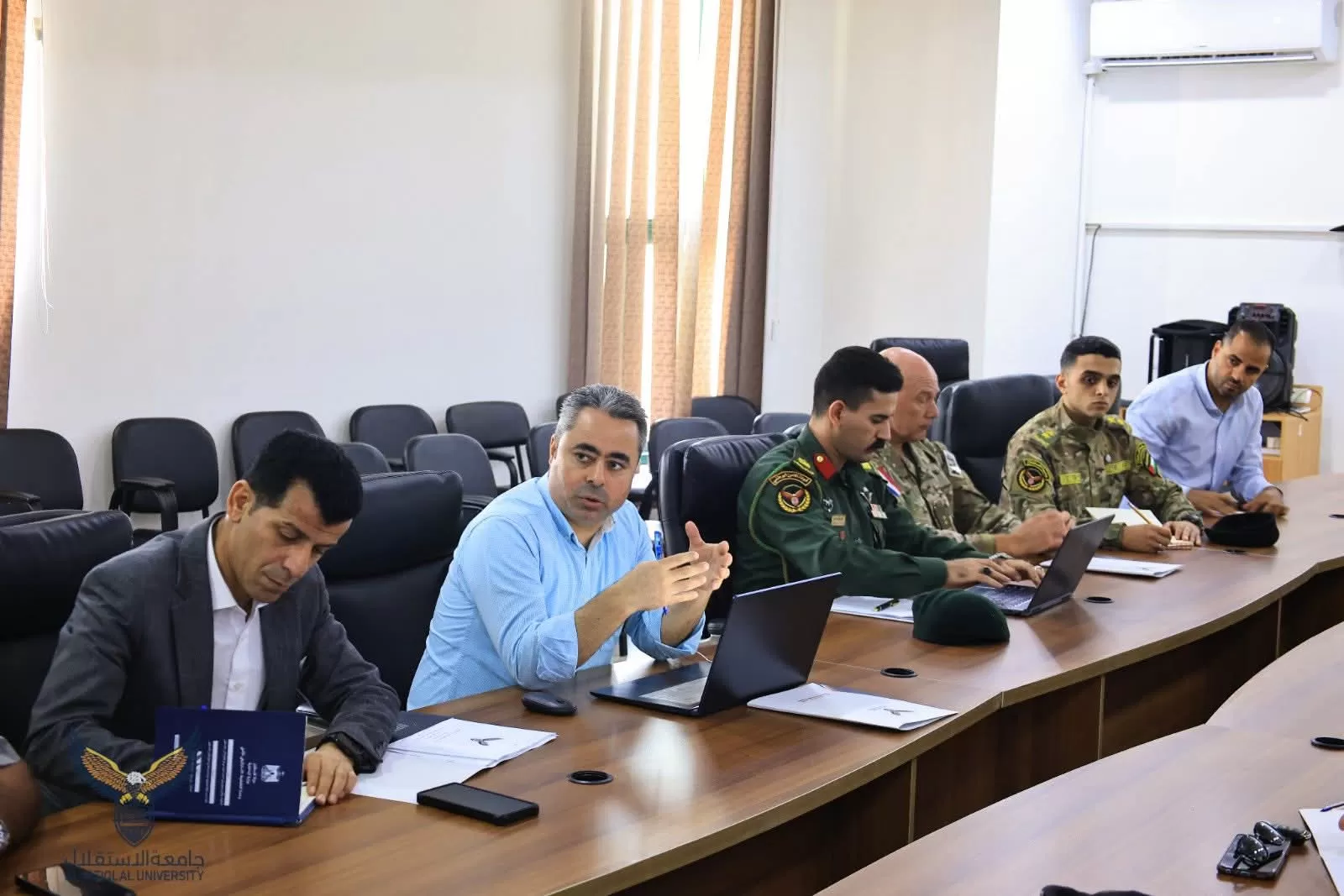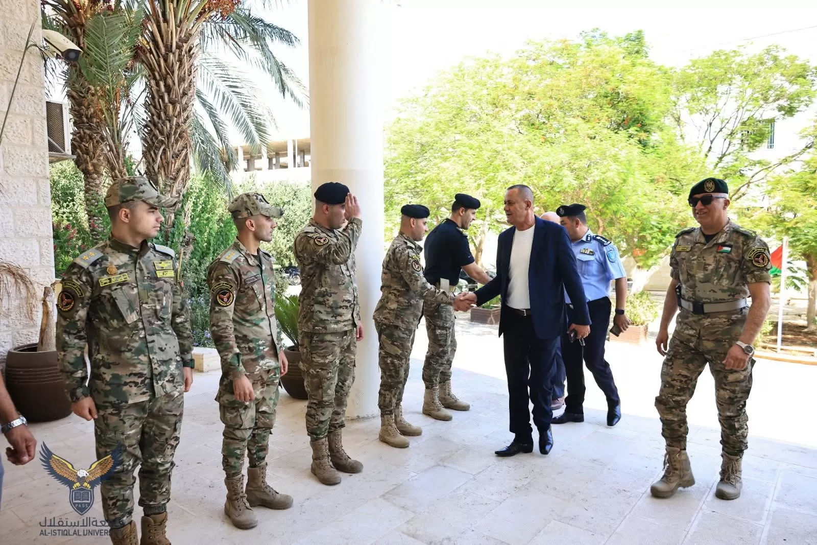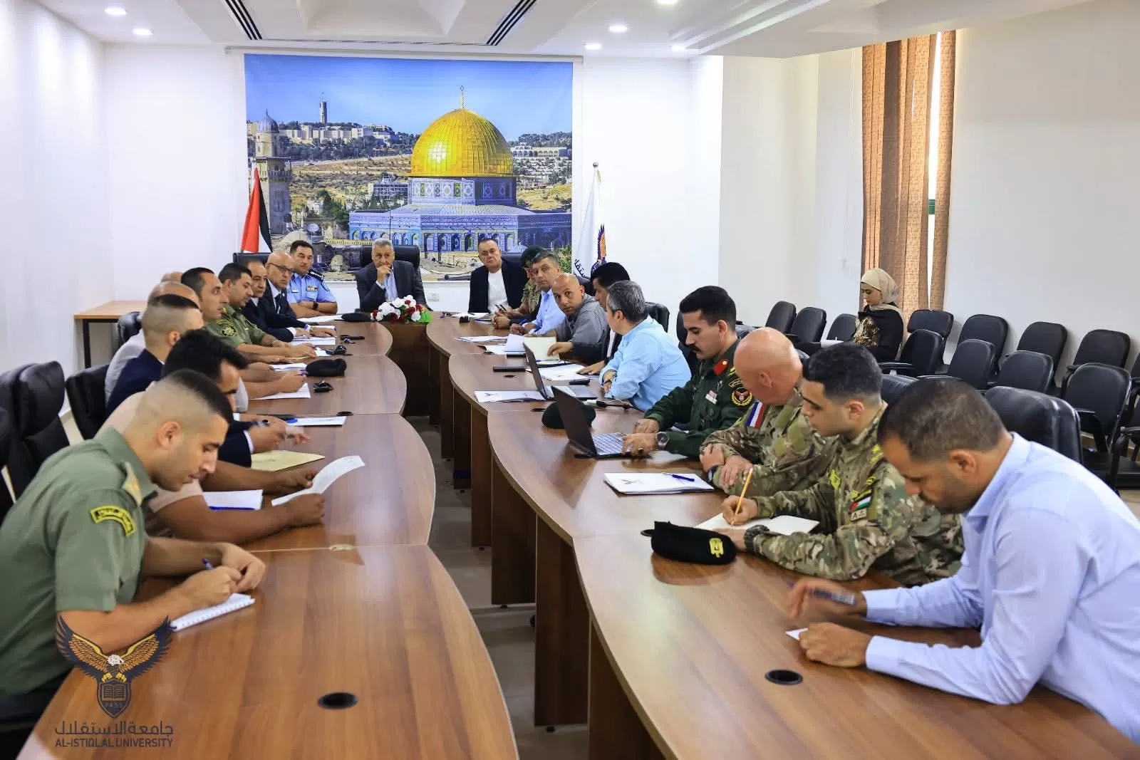 وجرى اللقاء، بحضور نواب رئيس الجامعة للشؤون العسكرية العميد زاهر صباح، الإدارية والمالية د. علي عيايدة، والشؤون الأكاديمية د. زياد الشرقوي،عميد الكلية المتوسطة د. بلال غنّام، عميد معهد التدريب والتنمية د. حسن الحيح، إلى جانب عدد من الكادر العسكري في الجامعة.