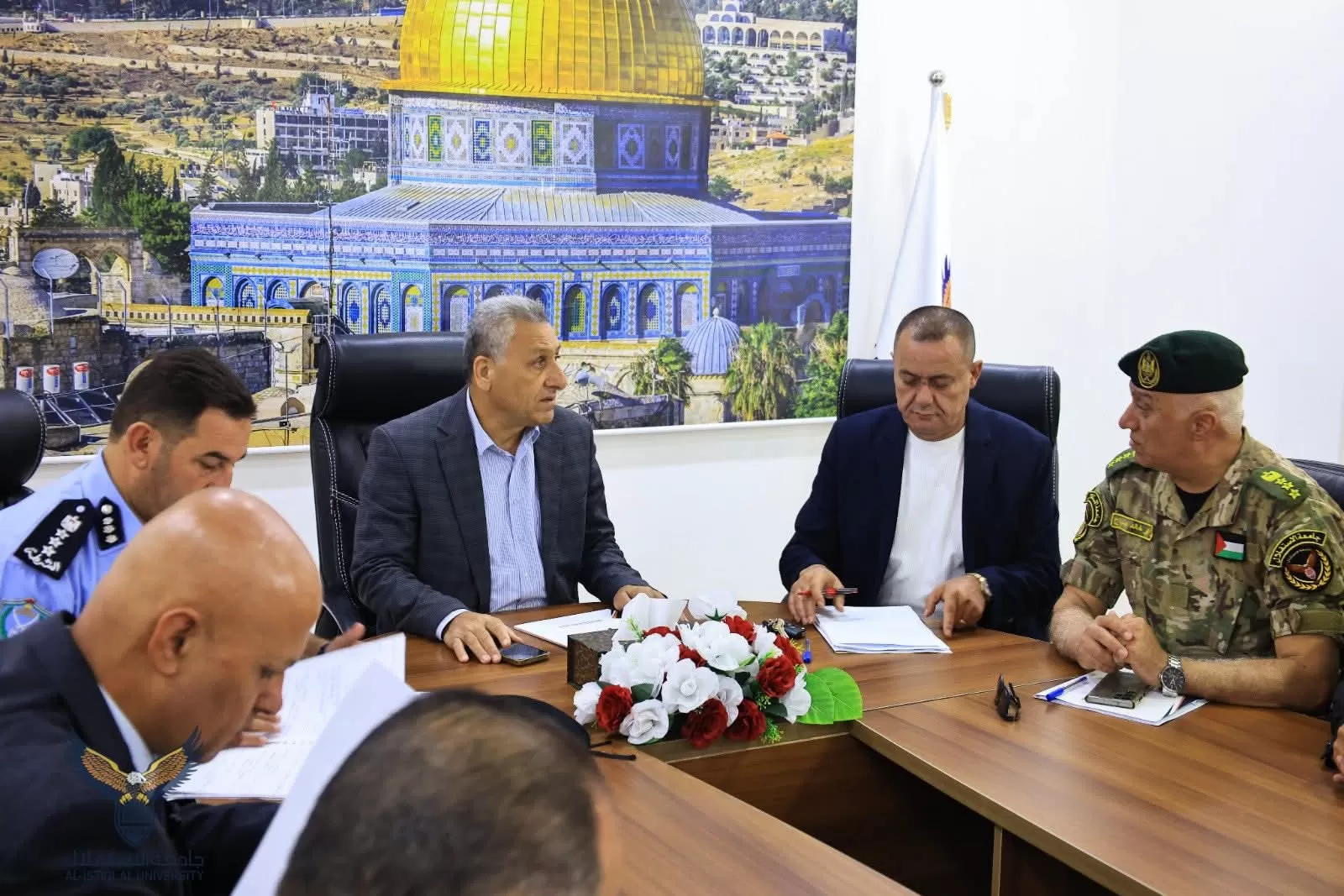اجتمع رئيس جامعة الاستقلال، الأستاذ الدكتور نور الدين أبو الرب، صباح اليوم الأحد، مع مدراء التدريب في الأجهزة الأمنية الفلسطينية، وذلك لبحث سبل التعاون وتعزيز البرامج التدريبية المشتركة بما يخدم تطوير الكوادر الأمنية ورفع كفاءتها.