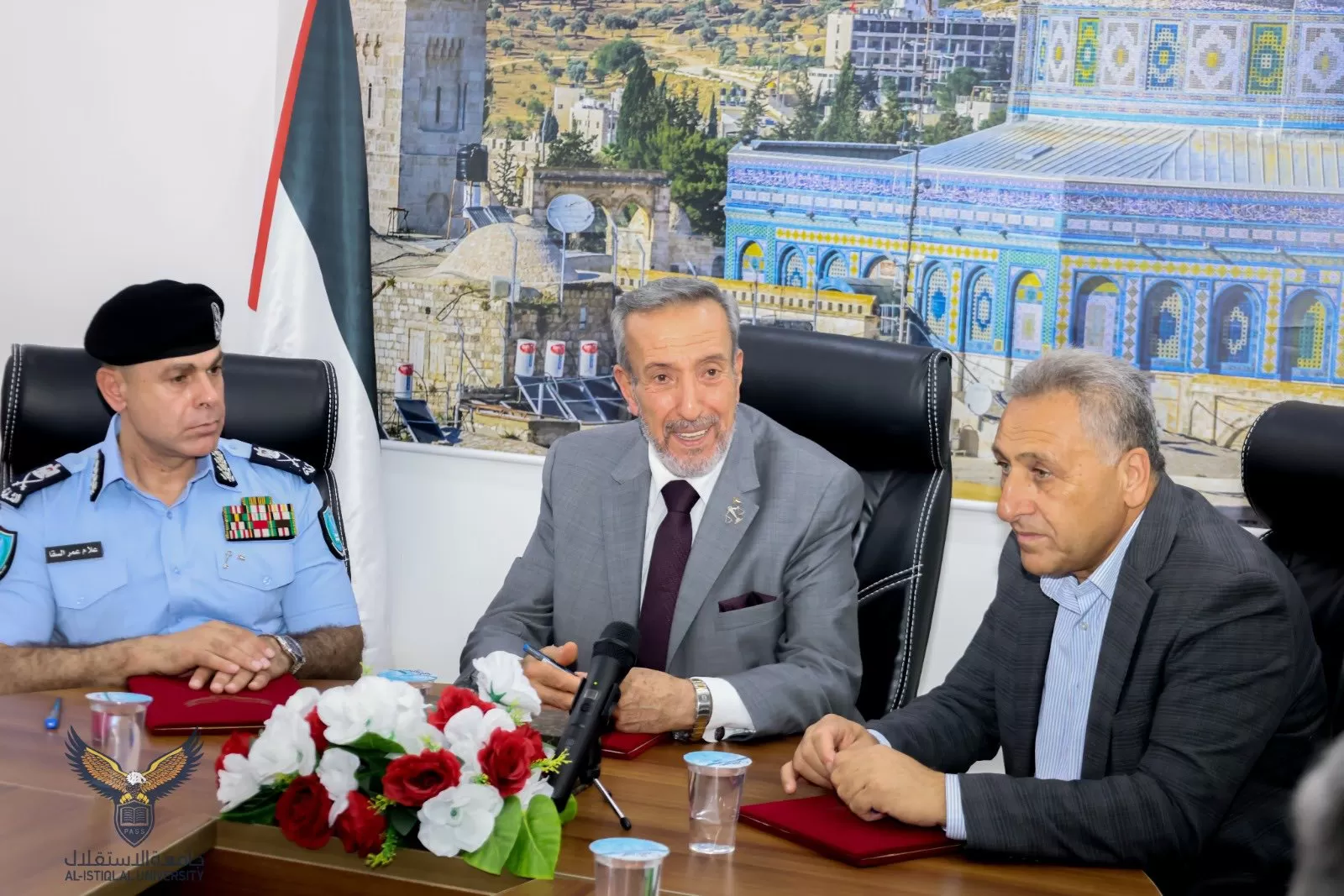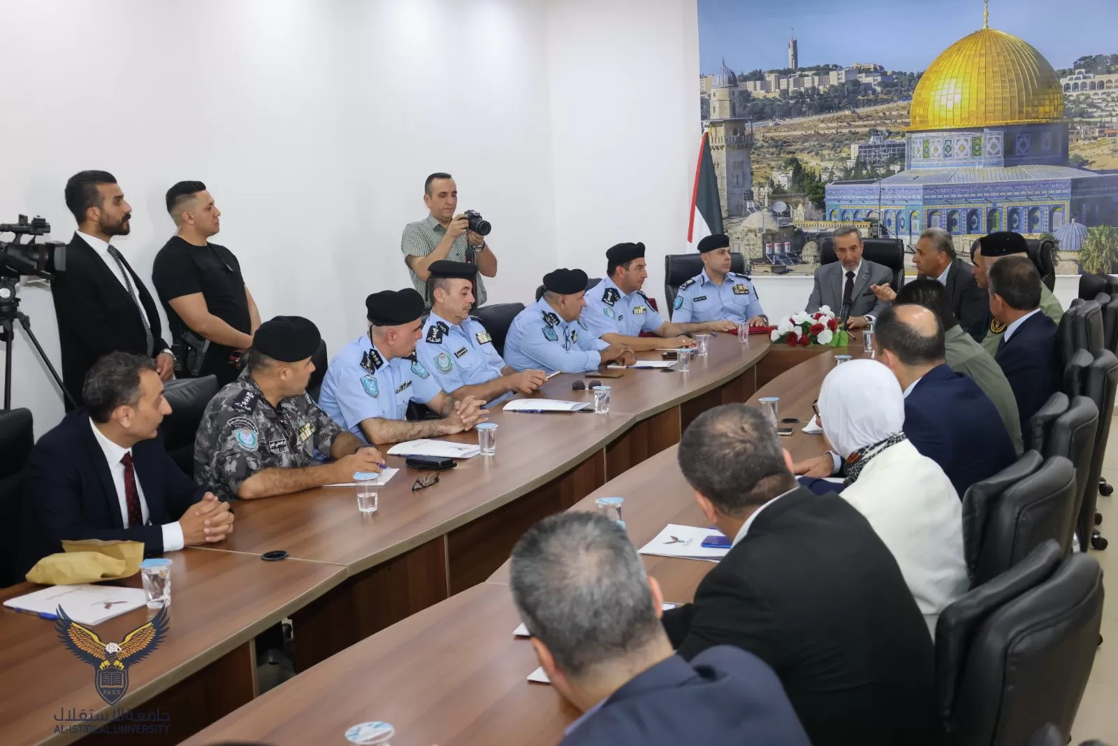 وجاء ذلك بحضور، نائب رئيس الجامعة للشؤون العسكرية العميد زاهر صباح، و نائب رئيس الجامعة للشؤون الإدارية والمالية د. علي عيايدة، و مسير الشؤون الأكاديمية د. زياد شرقاوي، ومدير ديوان رئيس الجامعة و مسؤول ملف العلاقات العامة و الدولية والإعلام د. إياد مسعود ، وعدد من مدراء وضباط الشرطة، وطاقم من وزارة العدل، وعمداء الكليات.