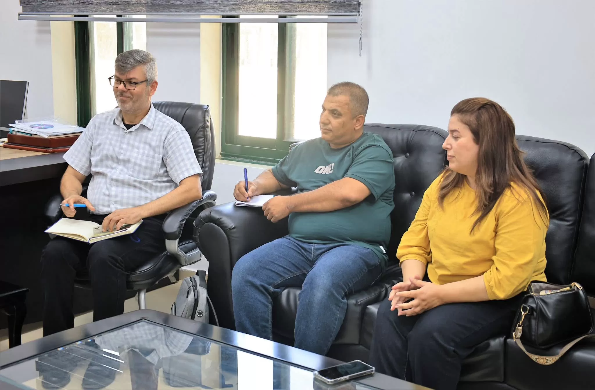 استقبل نائب رئيس جامعة الاستقلال للشؤون الإدارية والمالية، الدكتور علي عيايدة، وفداً من مركز أبحاث الأراضي التابع لجمعية الدراسات العربية، ضم كلاً من د. محمد اسليمية، و أ. محمد مطاوع،و أ. إيناس رحال.