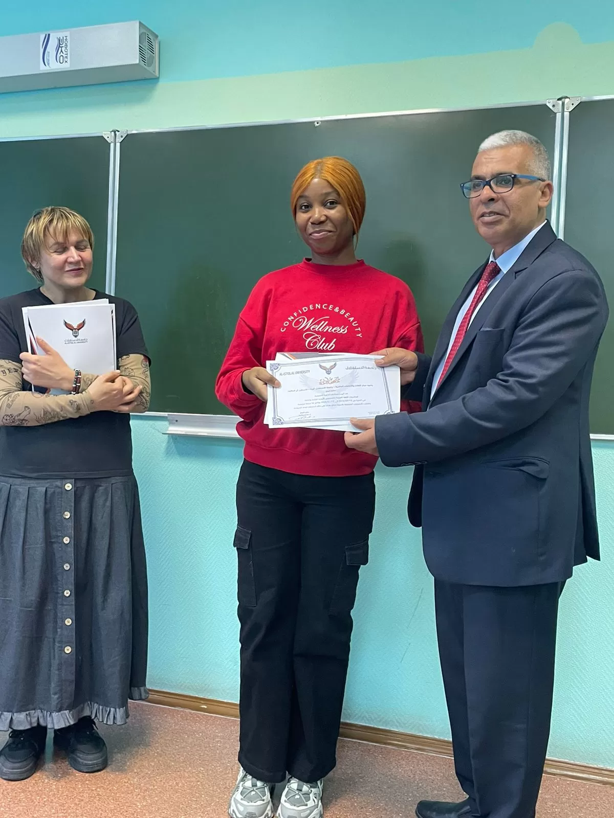 نظم مركز الشاعر سيرجي يسينين للغة والثقافة الروسية في جامعة الاستقلال، بالتعاون مع كلية القانون والعلاقات الدولية في جامعة الجنوب الغربي الروسية – مقاطعة كورسك، حفل تخريج دورتين في أساسيات اللغة العربية (المستوى الأول والمستوى الثاني)، بمشاركة 12 طالباً وطالبة من تخصص العلاقات الدولية.